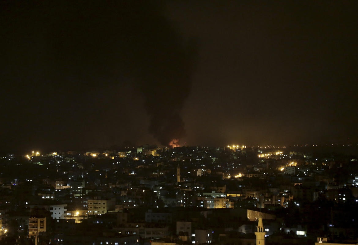 Khói bốc lên từ thành phố Gaza hôm 21/7. Cuộc đối đầu trong ngày hôm qua làm 65 người Palestine và 13 người Israel thiệt mạng. Chiến dịch quân sự khiến hàng ngàn người dân vội rã rời thành phố Gaza. Ảnh: AP