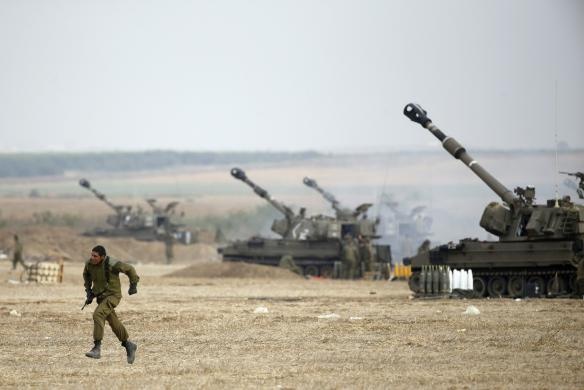 Xe tăng hạng nặng của Israel bên ngoài dải Gaza. Ảnh: Reuters