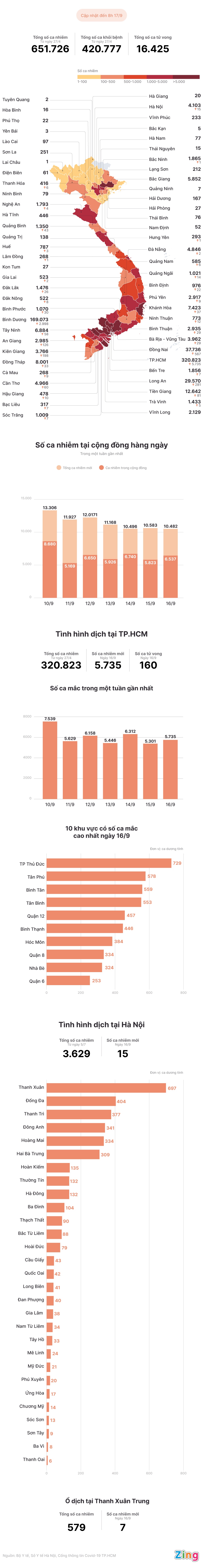 Trong ngày 16/9, Việt Nam ghi nhận 10.482 bệnh nhân Covid-19. Trong đó, 6.537 người được phát hiện ngoài cộng đồng.