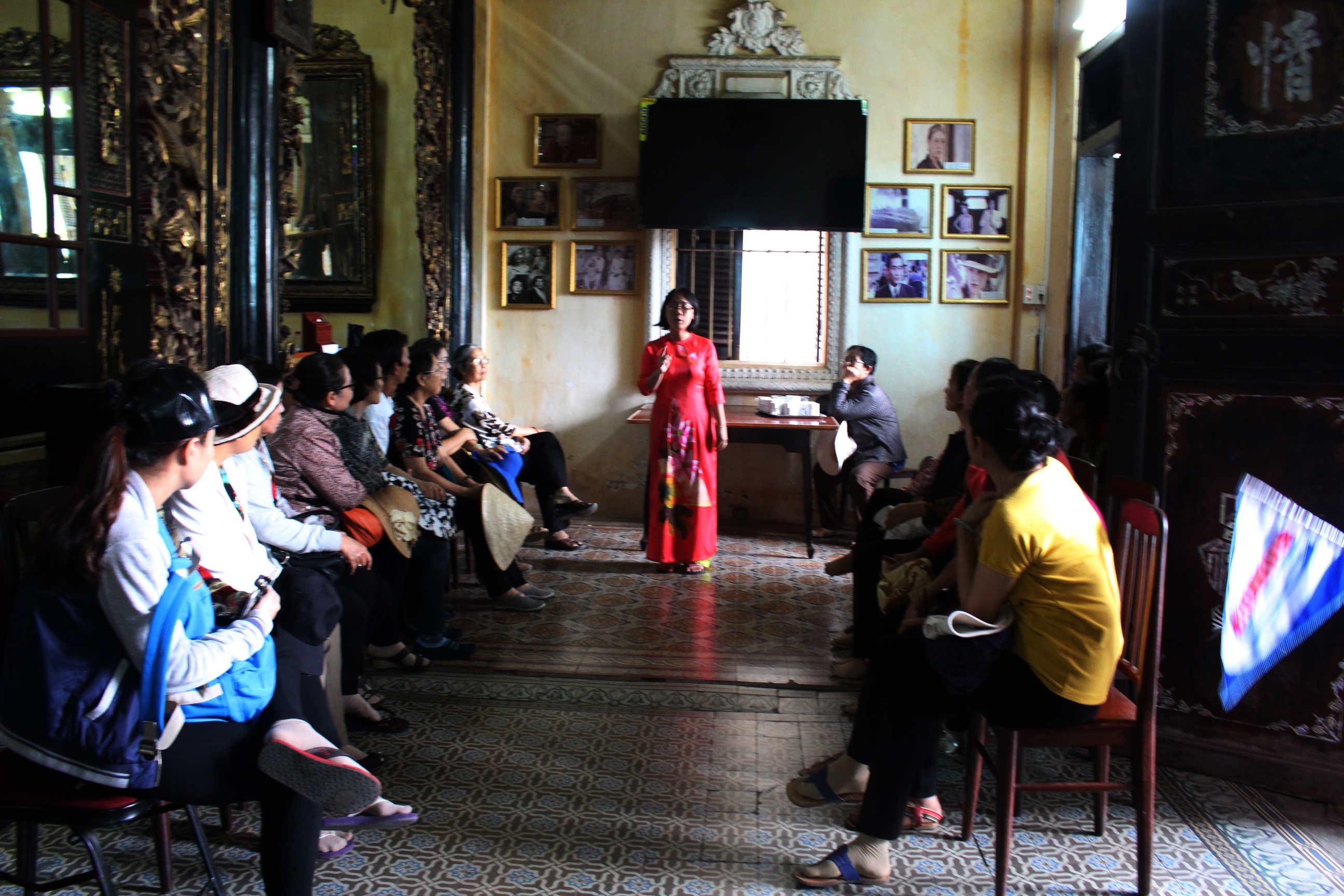 | Du khách nghe hướng dẫn viên kể về nhà cổ Huỳnh Thủy Lê (TP Sa Đéc).