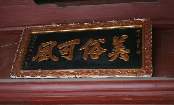 Cổng làng này có treo 4 chữ vàng "Mỹ Tục Khả Phong" do triều đình Tự Đức năm thứ 19 (1867) ban.