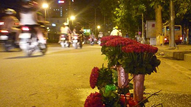 | Giá hoa hồng đỏ giảm 5 lần trong đêm Valentine. |