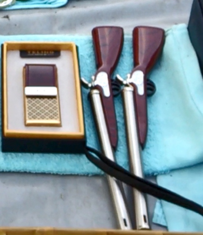 | Nhiều bật lửa rất giống súng cổ, những loại này có kèm đèn pin, giá khoảng 1 triệu đồng/chiếc. |