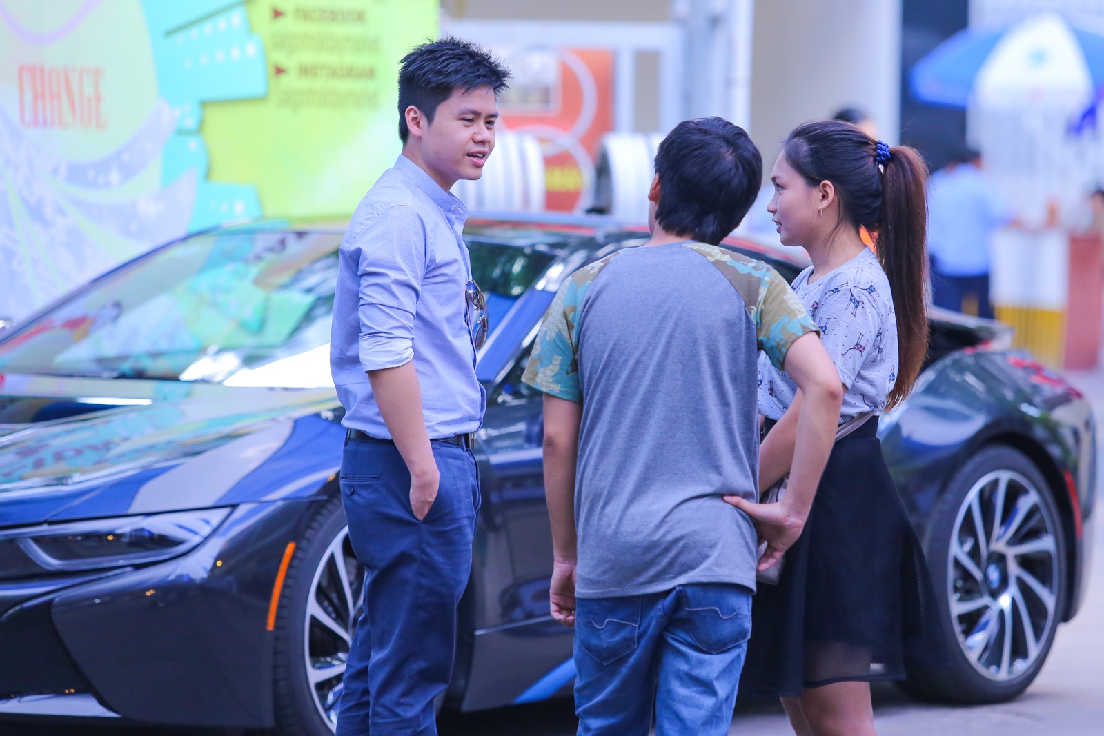 Thiếu gia Phan Thành tự cầm lái chiếc BMW i8 đắt đỏ đến cơ sở kinh doanh do anh và bạn gái thành lập.