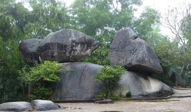 “Trước đây, nếu một người đi qua khe hở giữa hai hòn đá phải lách, nếu không sẽ bị va đầu vào mỏm một trong hai hòn Trống hoặc Mái. Nhưng nay thì khoảng cách giữa hai mỏm nằm khá xa nhau nên người trèo lên bệ đá có thể đi qua lại giữa hai mỏm đá rất thoải mái” - anh Cam nói.