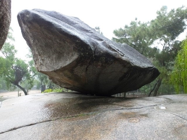Mặt tiếp giáp giữa hòn Mái với khối đá bệ trụ chỉ còn “dính nhau” với tiết diện khoảng 40cm, khá chênh vênh, một người vịn tay vào mỏm hòn Mái (với khối lượng nặng hàng trăm tấn) tác động lực nhỏ đã cảm nhận thấy sự “rung rinh”.