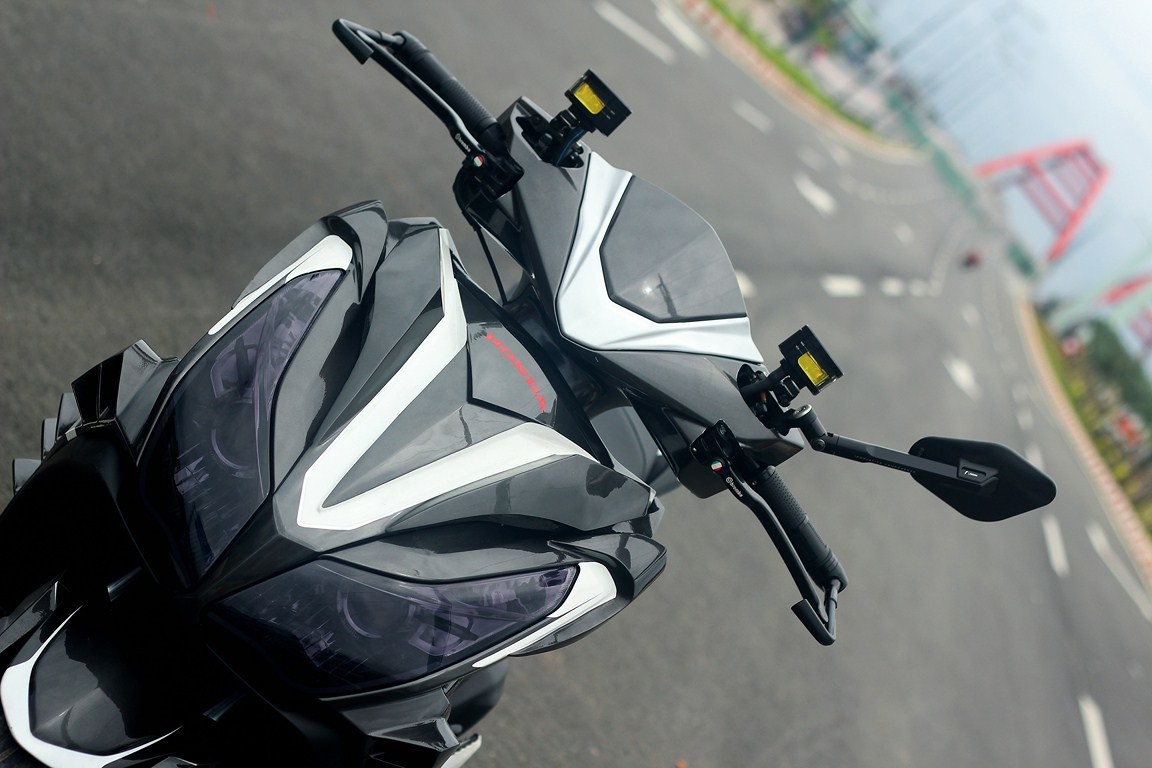 Với tông màu chủ đạo là xám - trắng bóng, phong cách phối màu theo mảng lớn và tạo điểm nhấn bằng những logo phụ kiện xe được yêu thích như brembo, rizoma,...