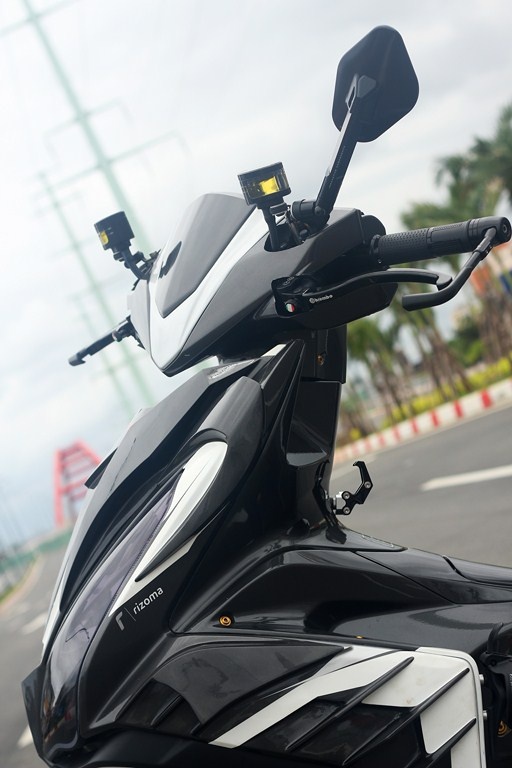| Các phụ kiện như bao tay, bình dầu, pat bình dầu, gù bảo vệ tay thắng, kiếng, gù chống đổ trước, đèn xinhan, nắp nhớt đều của hãng Rizoma. |