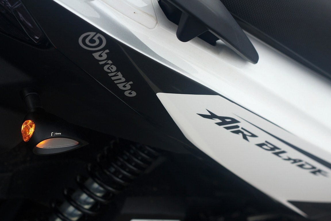 Chiếc Air Blade 125 được chế mủ và sơn phối màu theo phong cách trẻ trung nhưng thanh lịch.
