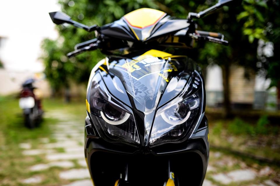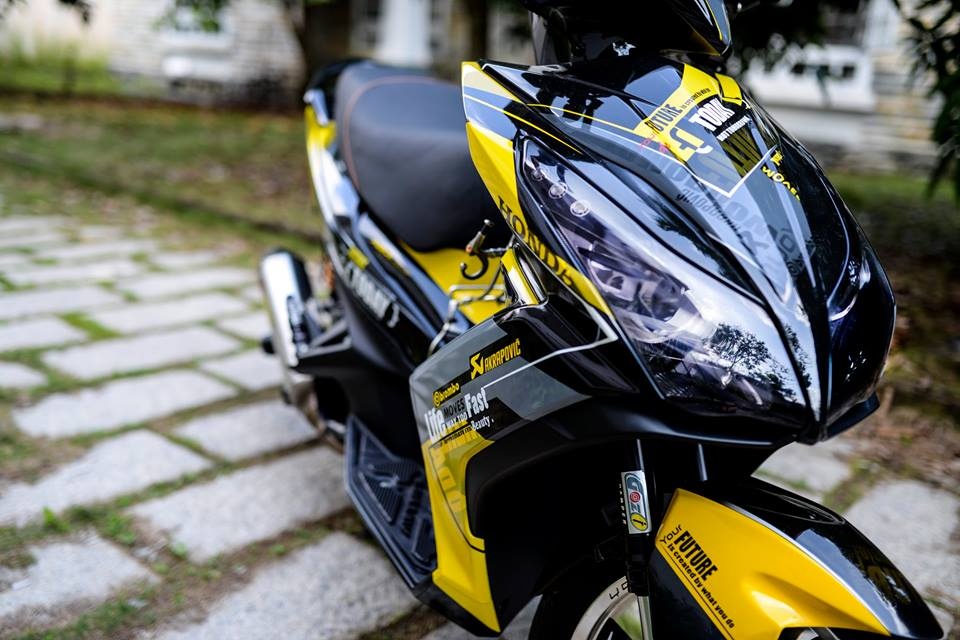 | Chiếc Honda Air Blade 125 nguyên bản có màu cam đen. Ở phiên bản độ đầu tiên, dàn áo của xe được vẽ 3D phong cách phượng hoàng lửa. Đến phiên bản 2, chiếc xe lột xác với tem đồ họa và loạt đồ chơi hàng hiệu. |