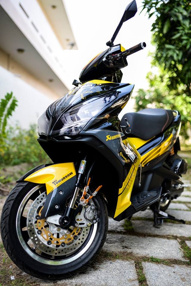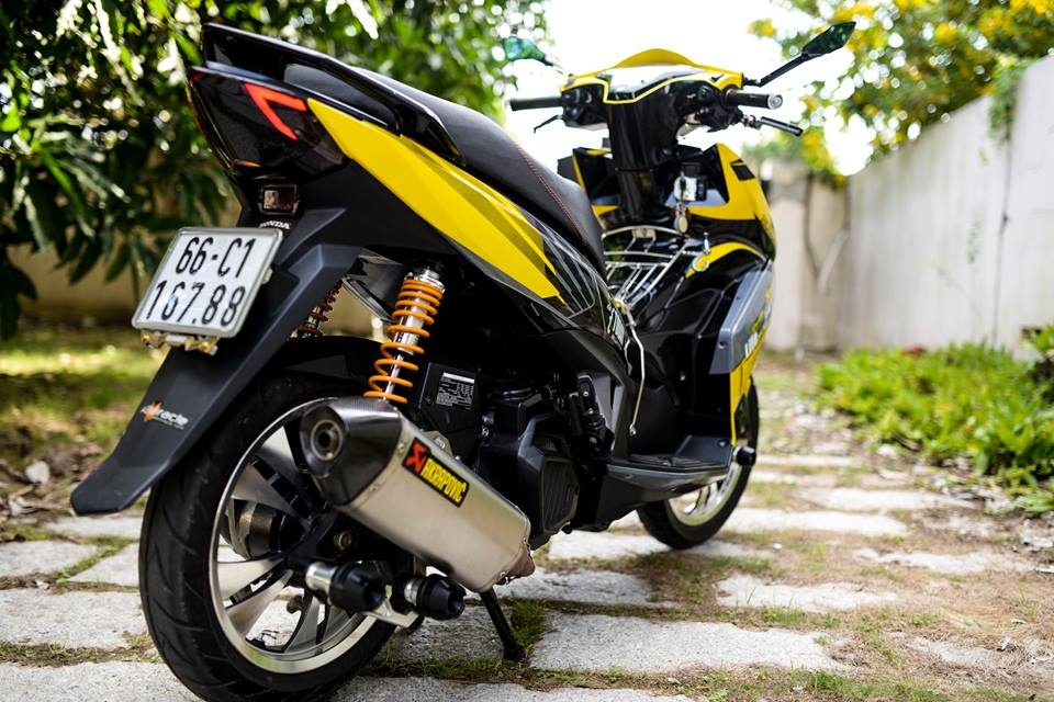 Chiếc xe tay ga của một biker ở Đồng Tháp lên các phụ kiện hàng hiệu như hệ thống phanh Brembo, giảm xóc Gazi hay pô Akrapovic.