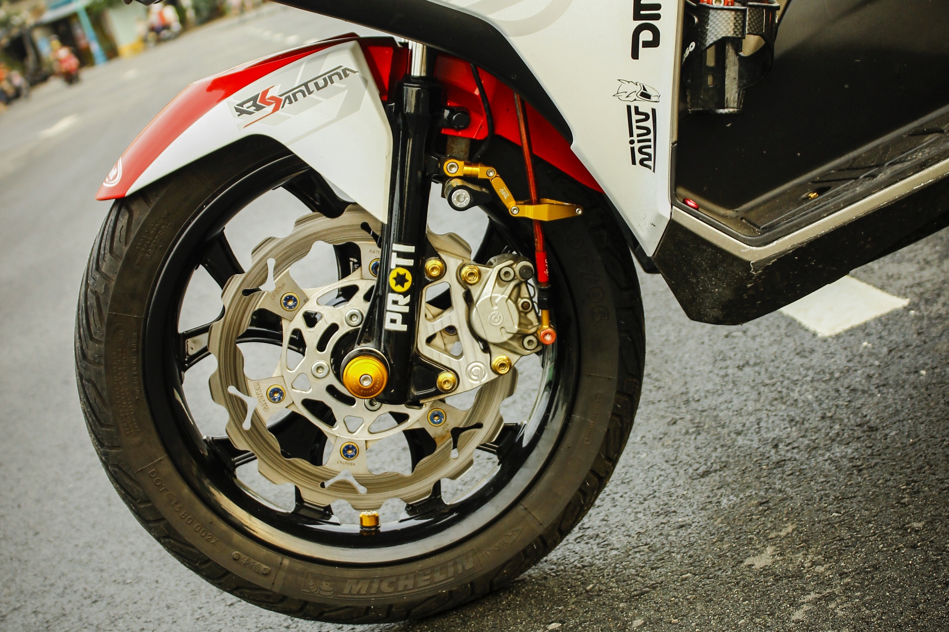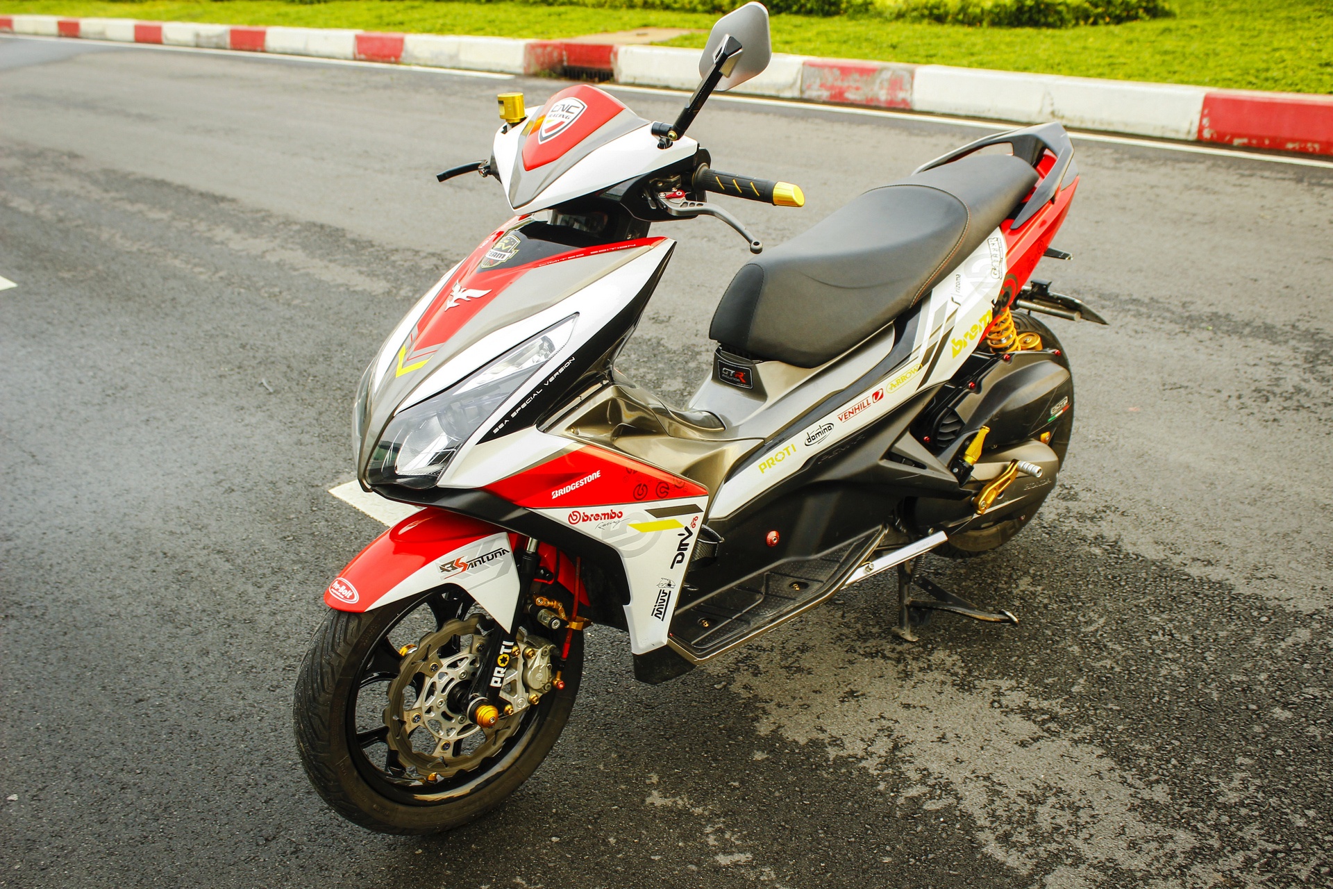 Mẫu xe tay ga phổ thông của Honda trở nên khác lạ nhờ dàn áo sơn tem đấu cùng những món phụ kiện đắt tiền của Brembo, Ohlins...