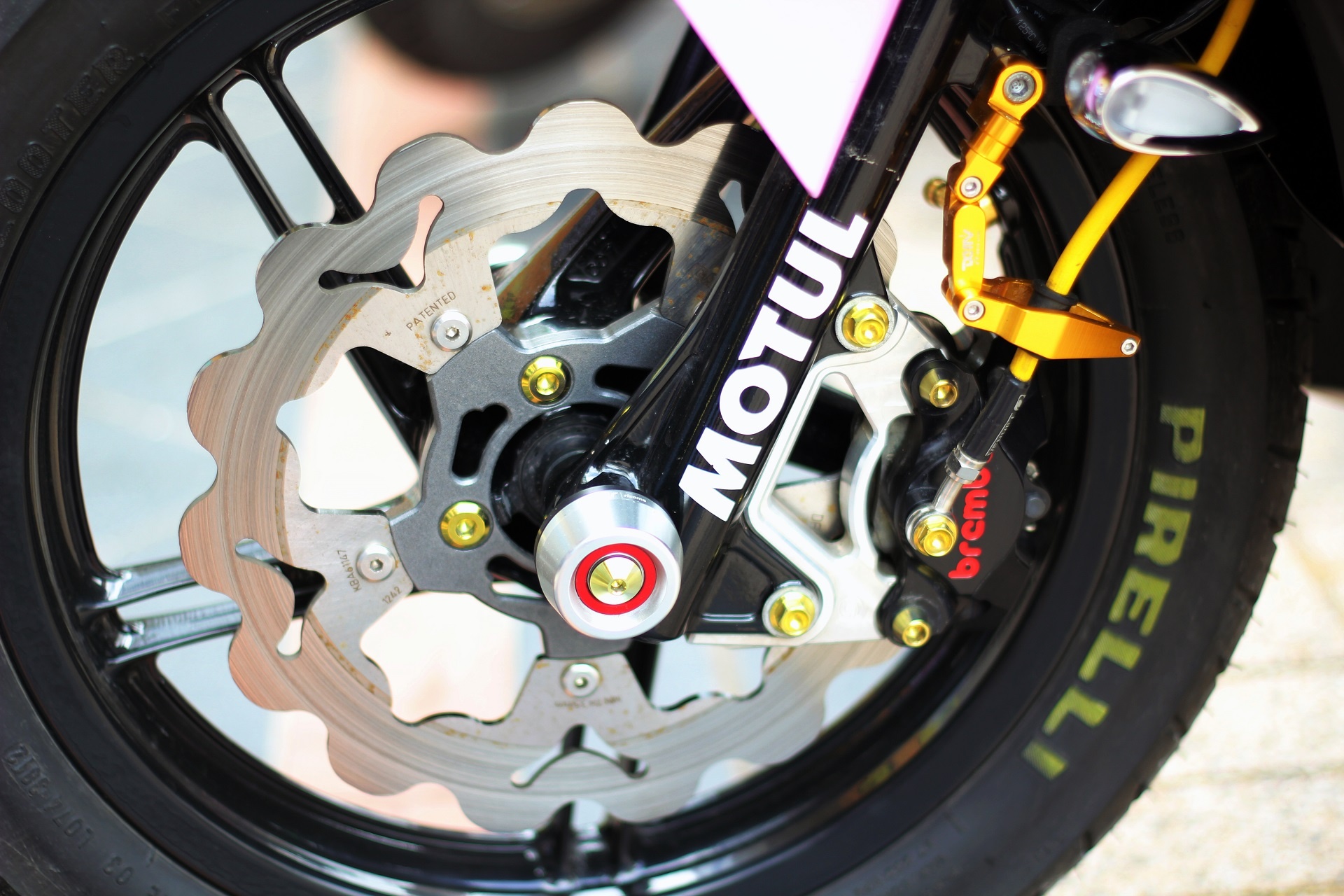 | Đĩa phanh răng cưa, heo dầu của Brembo. |