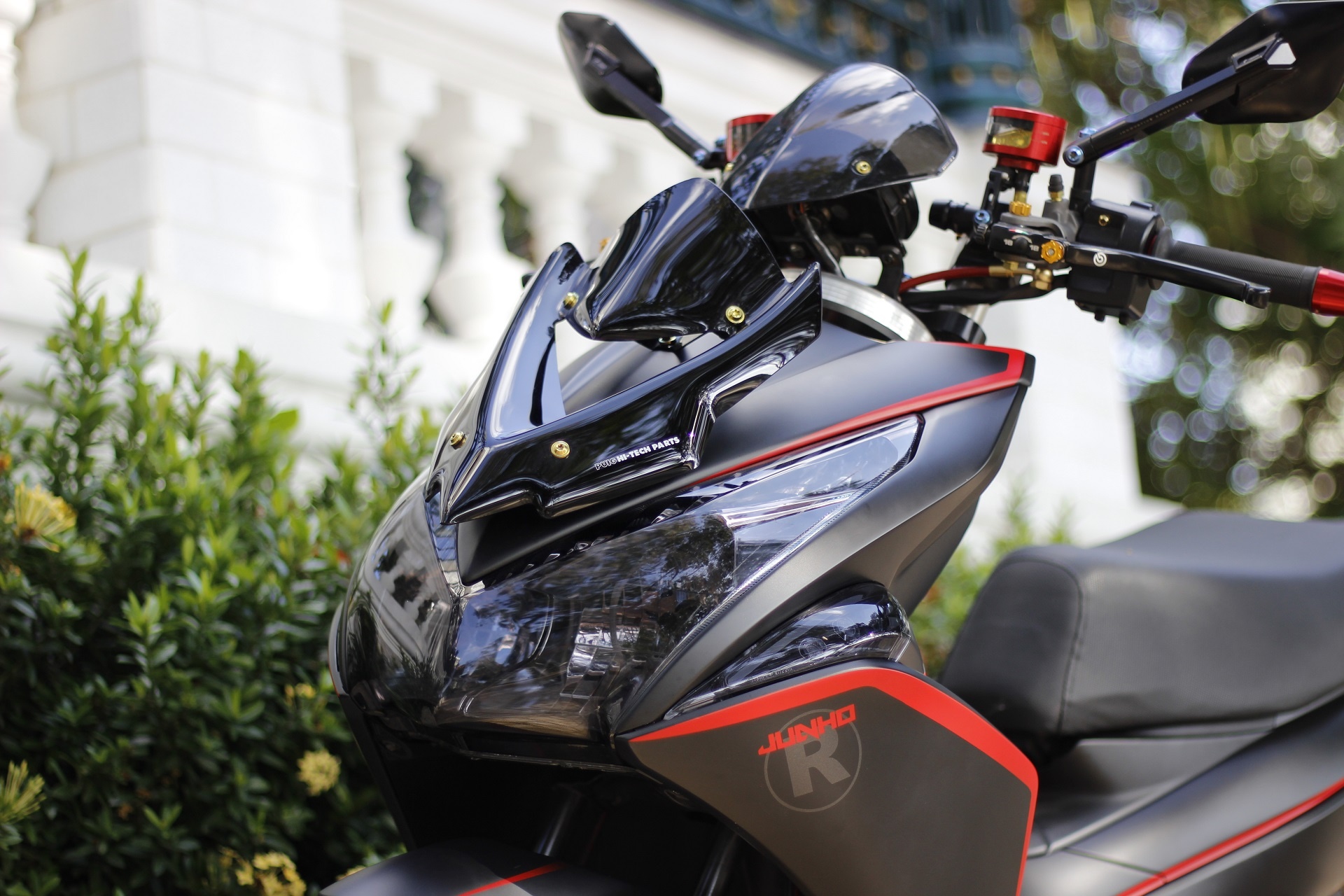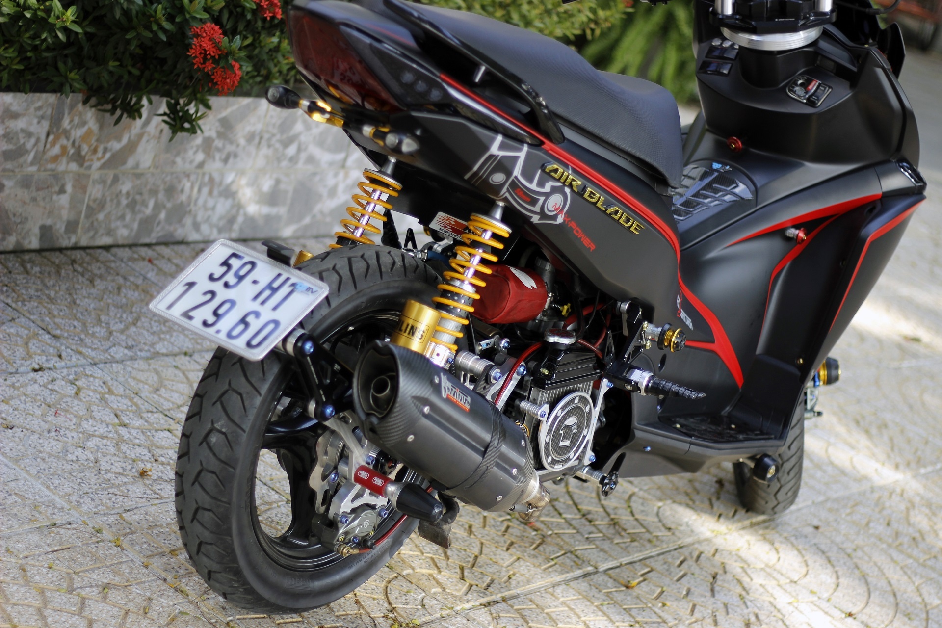 | Chiếc Honda Air Blade đời 2011 được sơn hai tông màu chủ đạo đỏ - đen, thuộc sở hữu của bạn trẻ đam mê xe có nickname Jun Ho. |