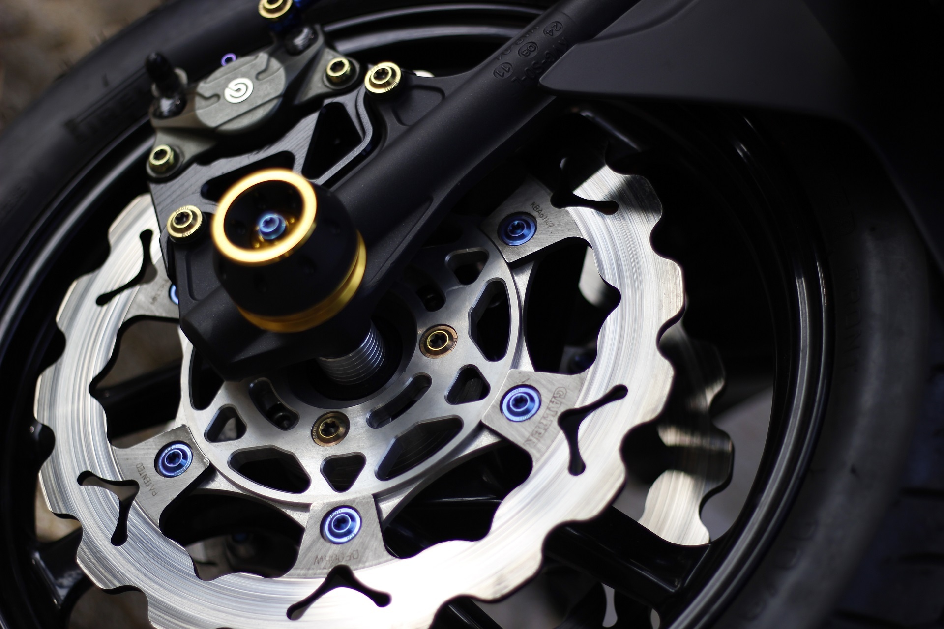 | Đĩa trước hiệu Gafter, chụp cốt DMV, cùng heo dầu Brembo. |