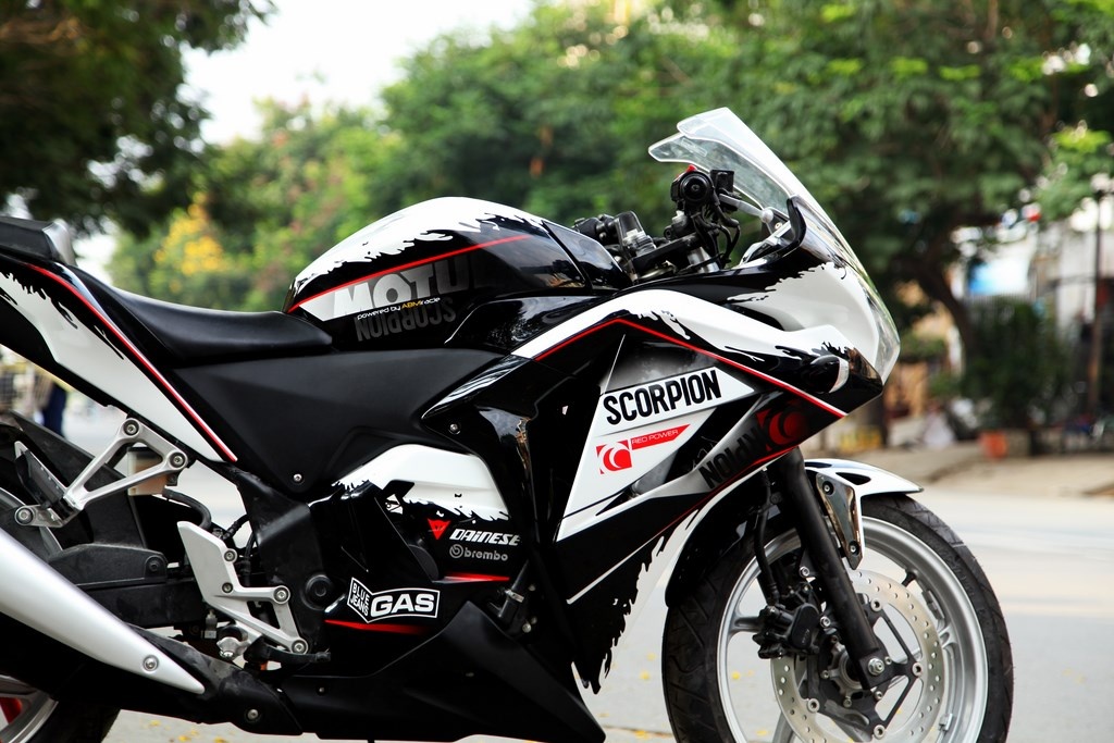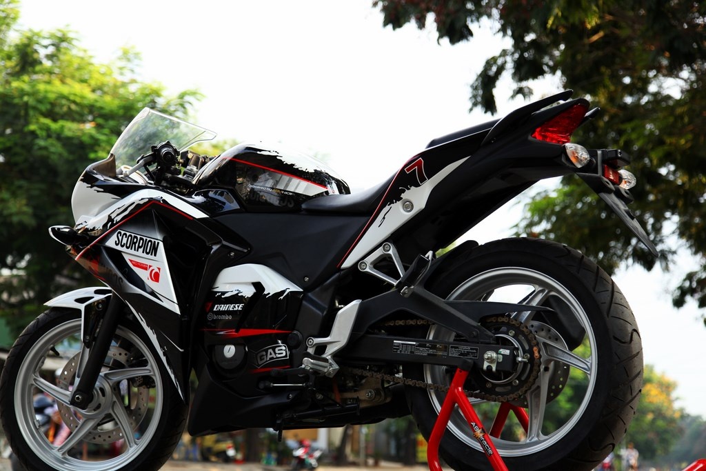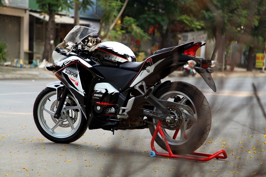 Một người chơi mô tô ở Hà Nội đã gửi chiếc Honda CBR 250R mới tinh vào xưởng độ ở Sài Gòn để sơn tem đấu và tạo dáng lại hầm hố hơn.
