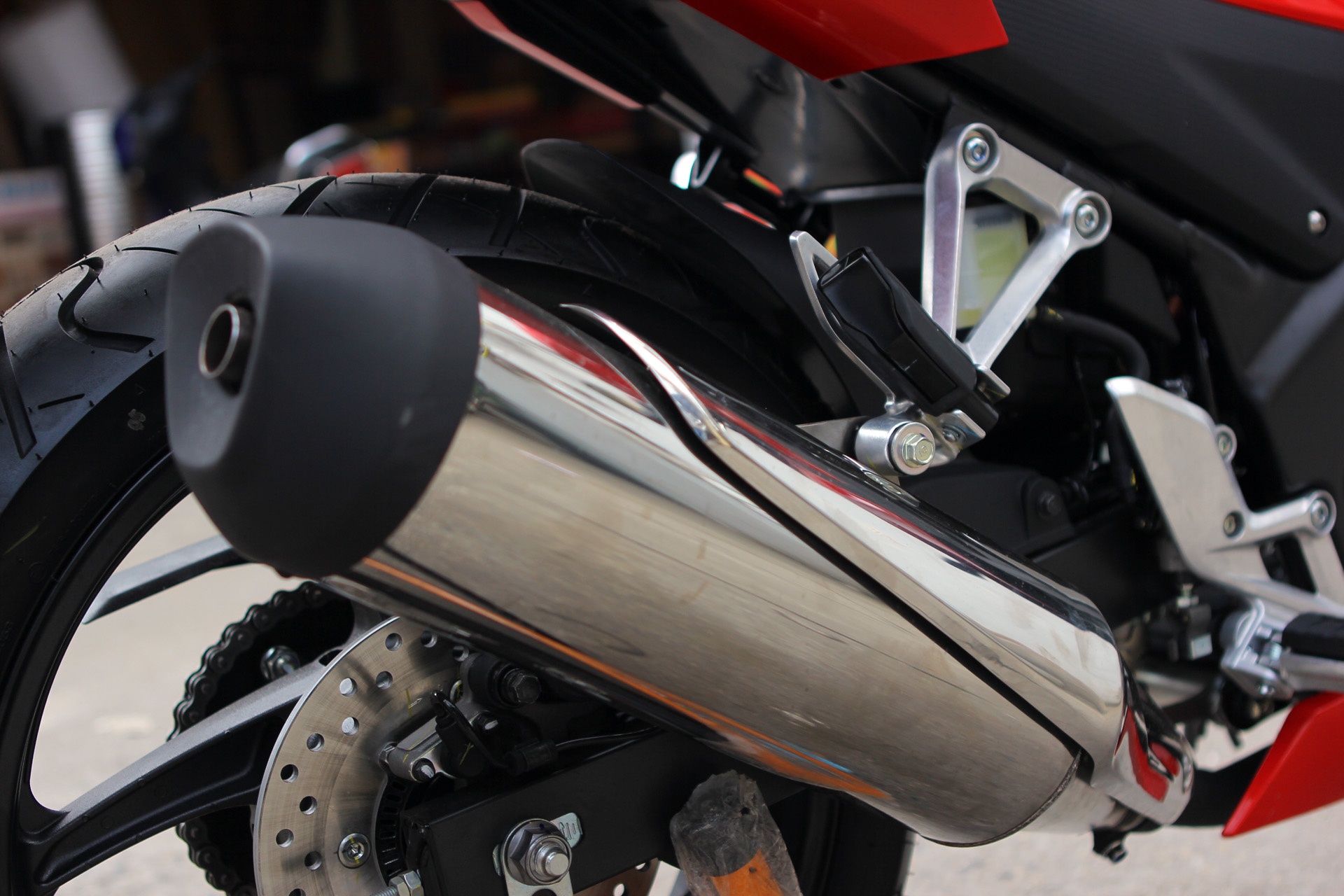 | Thiết kế pô xe của Ninja 300 có phần to hơn so với CBR300R. |