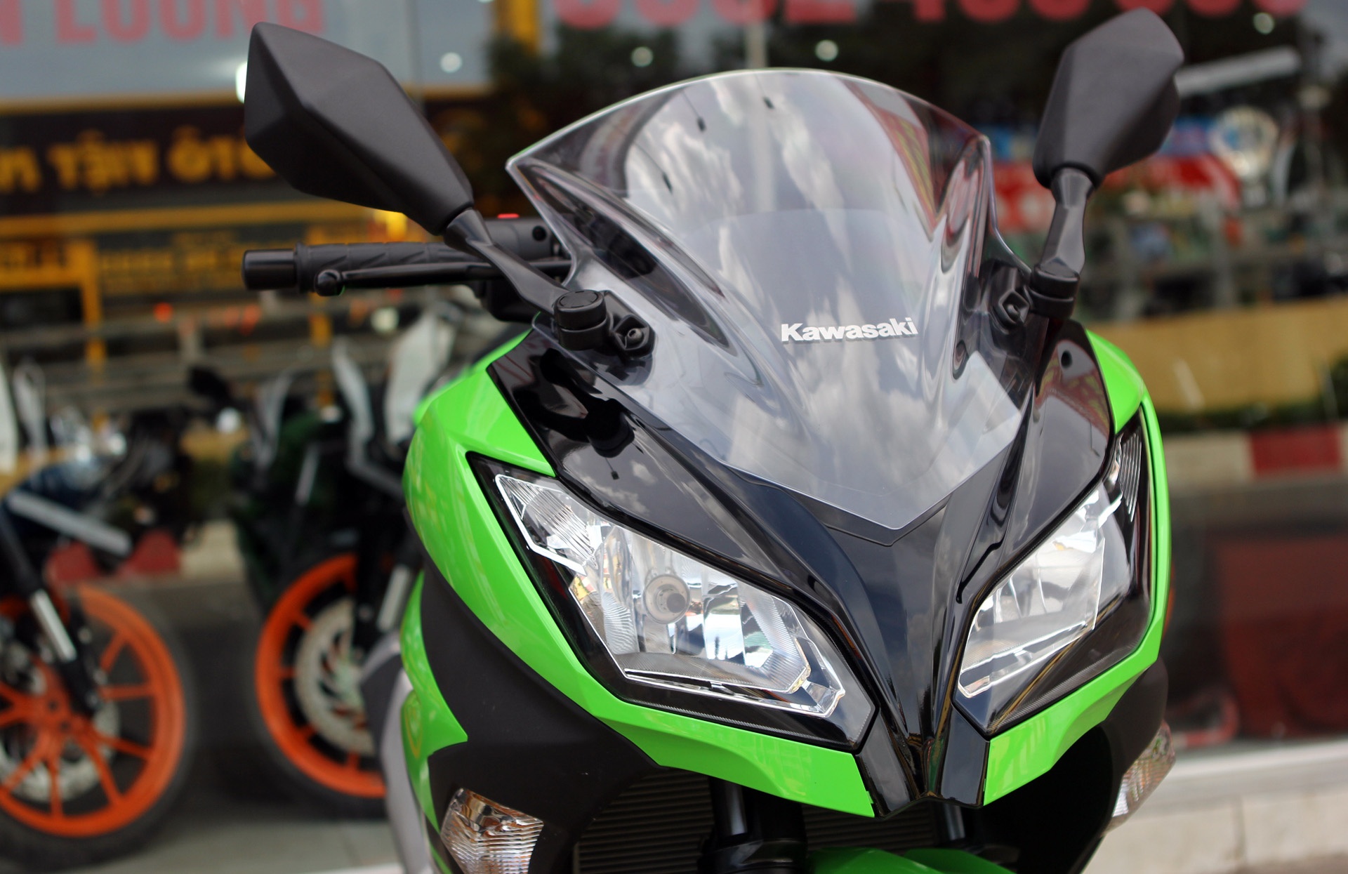| Kawasaki Ninja 300 và Honda CBR300R đều được trang bị đèn pha đôi. Phần đầu xe có kính chắn gió lớn. Cặp đèn xi-nhan của Kawasaki Ninja 300 được thiết kế liền luôn vào yếm xe, trong khi CBR300R có cặp xi-nhan nằm nhô ra bên ngoài. Thiết kế đèn pha của Ninja 300 có phần dữ hơn so với thiết kế của CBR300R. |