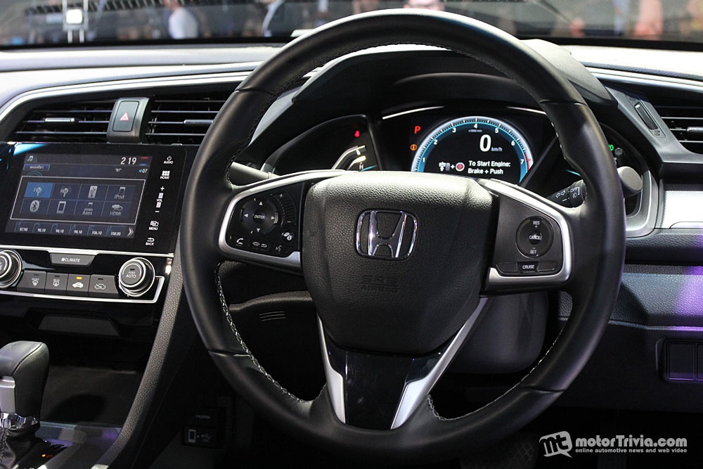 Civic 2016 cũng được trang bị nhiều tiện ích cho người dùng, như hệ thống kiểm soát tốc độ tự động, Cruise Control. Một số phiên bản còn tích hợp lẫy chuyển số trên vô lăng. |