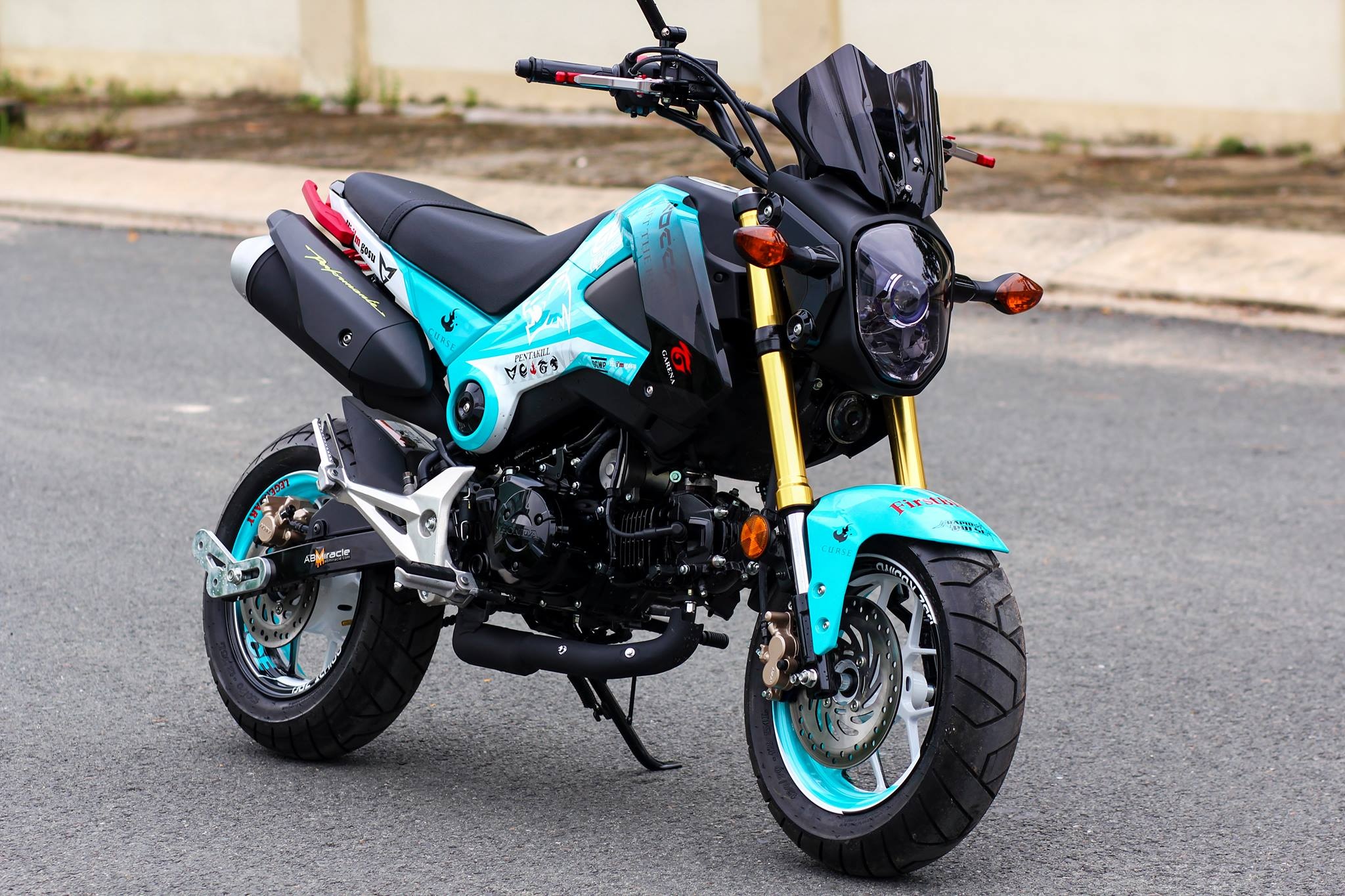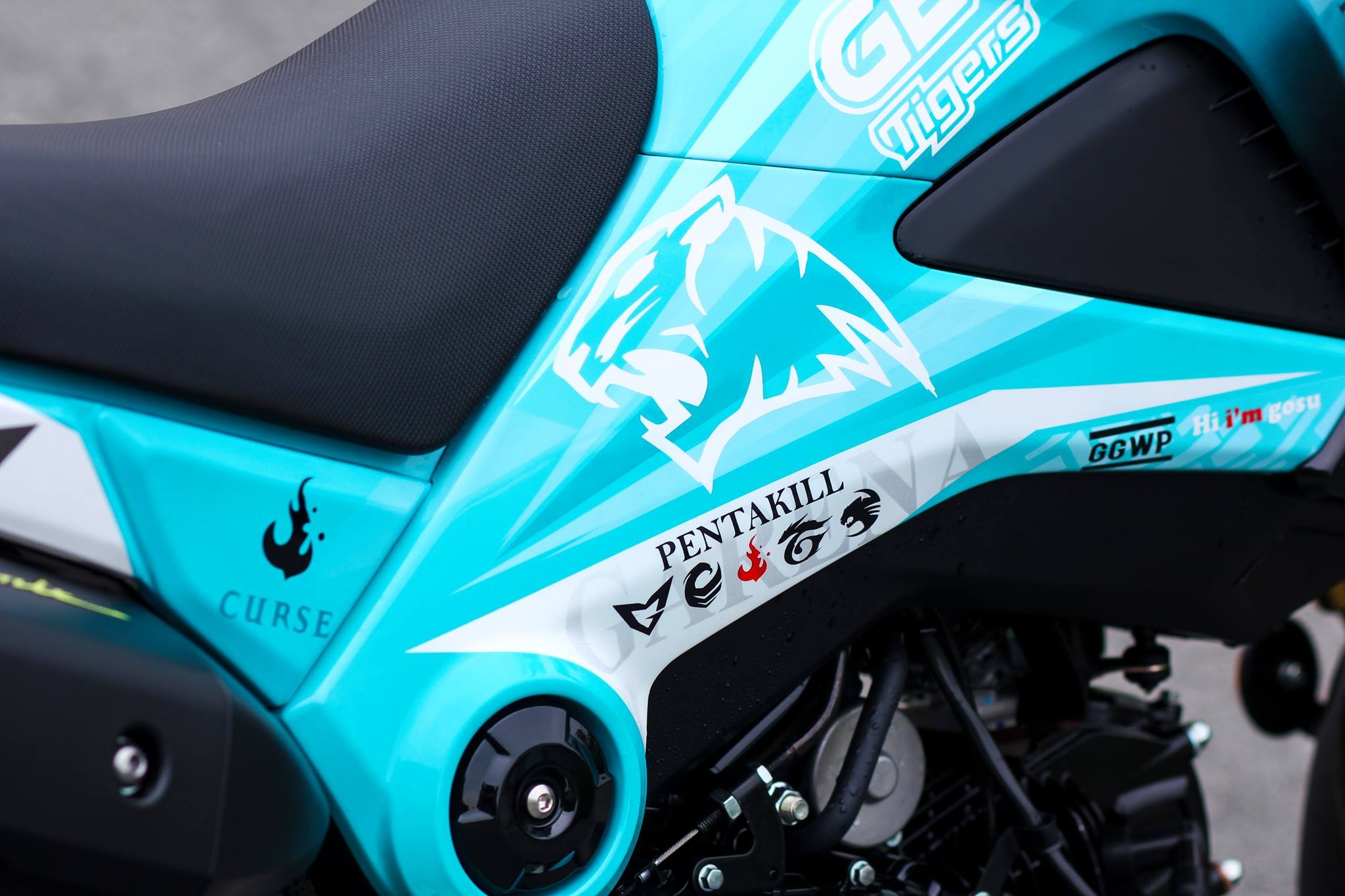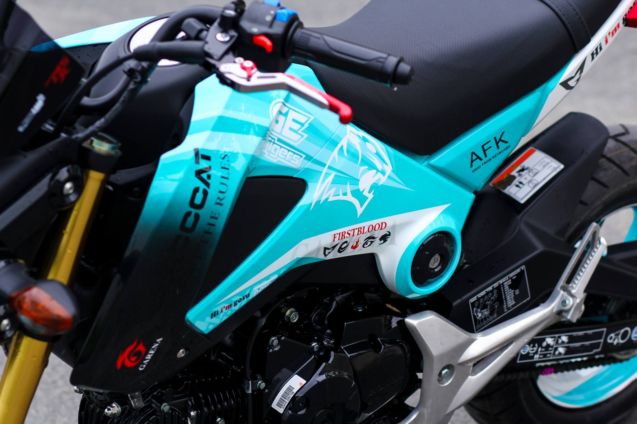 Chiếc xe côn tay cỡ nhỏ của Honda được lột xác với dàn áo, cặp mâm sơn màu xanh bạc hà cùng họa tiết lấy cảm hứng từ game online.