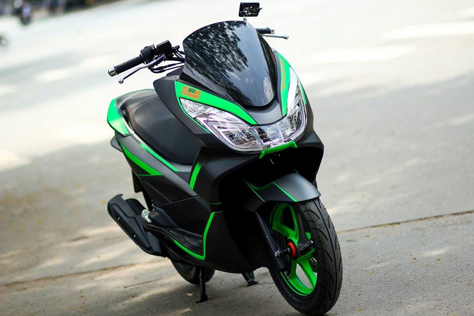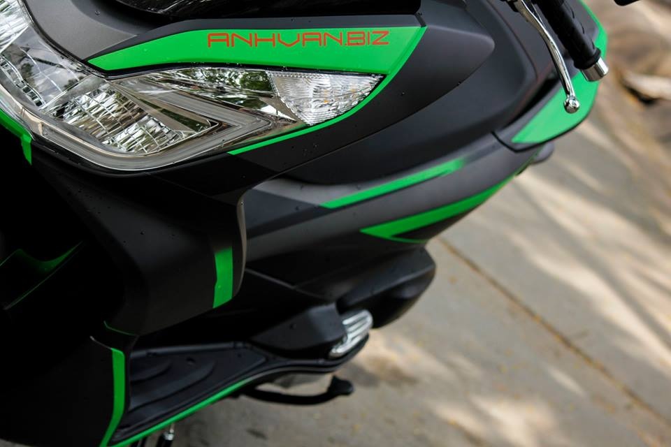 | Với ý tưởng tạo một phiên bản PCX độc đáo, chiếc xe đã được sơn phối lại, với màu xám siêu xe Lamborghini làm chủ đạo, các mảng màu xanh lá làm điểm nhấn. Cặp vành cũng được sơn đồng bộ để tạo sự thống nhất với thân xe. |