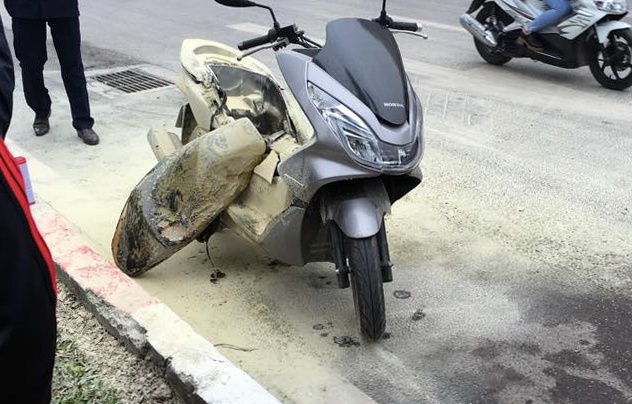 Chiếc xe PCX bốc chay khi đang lưu thông trên đường. Ảnh: Quân Nguyễn. |