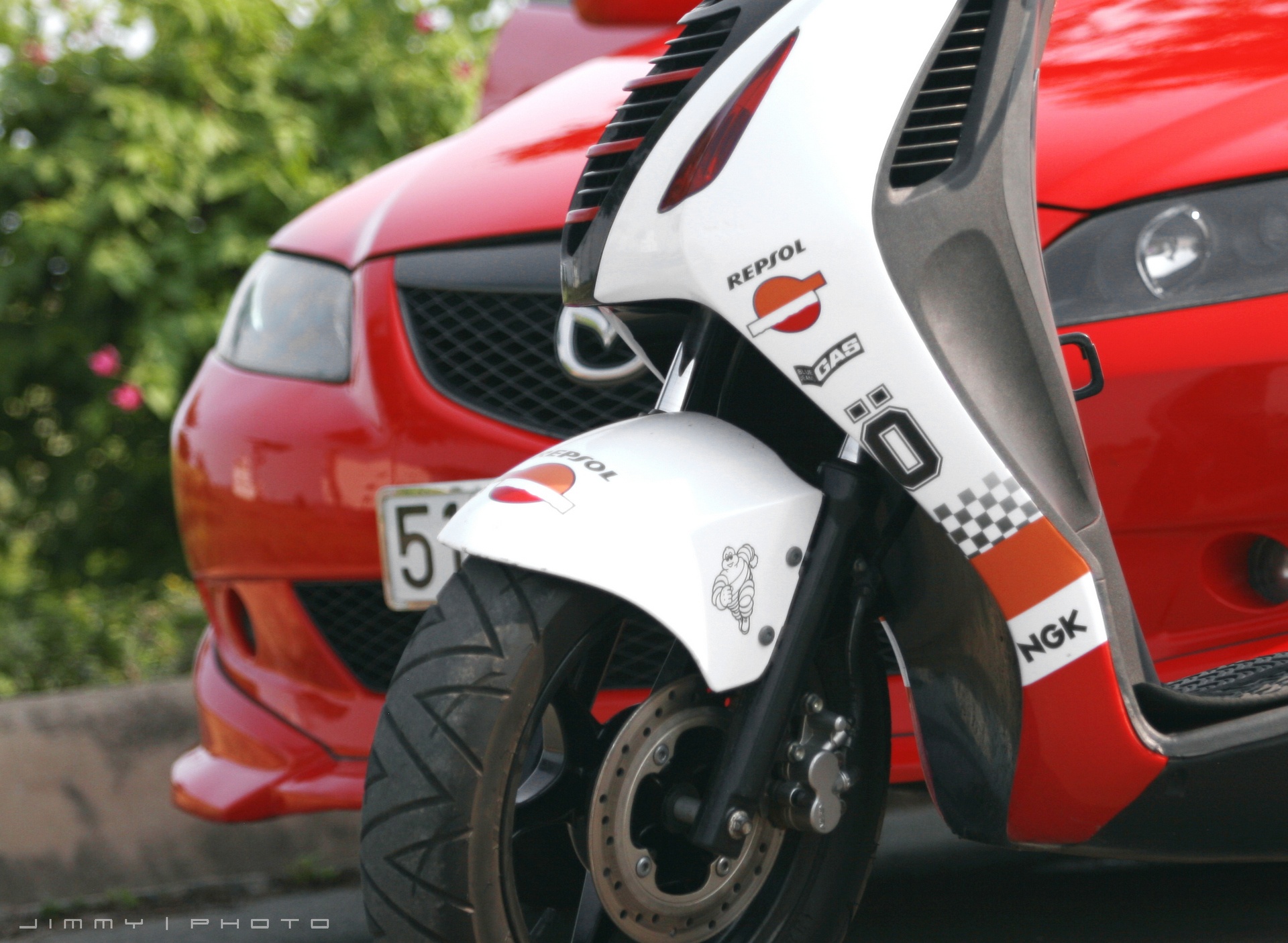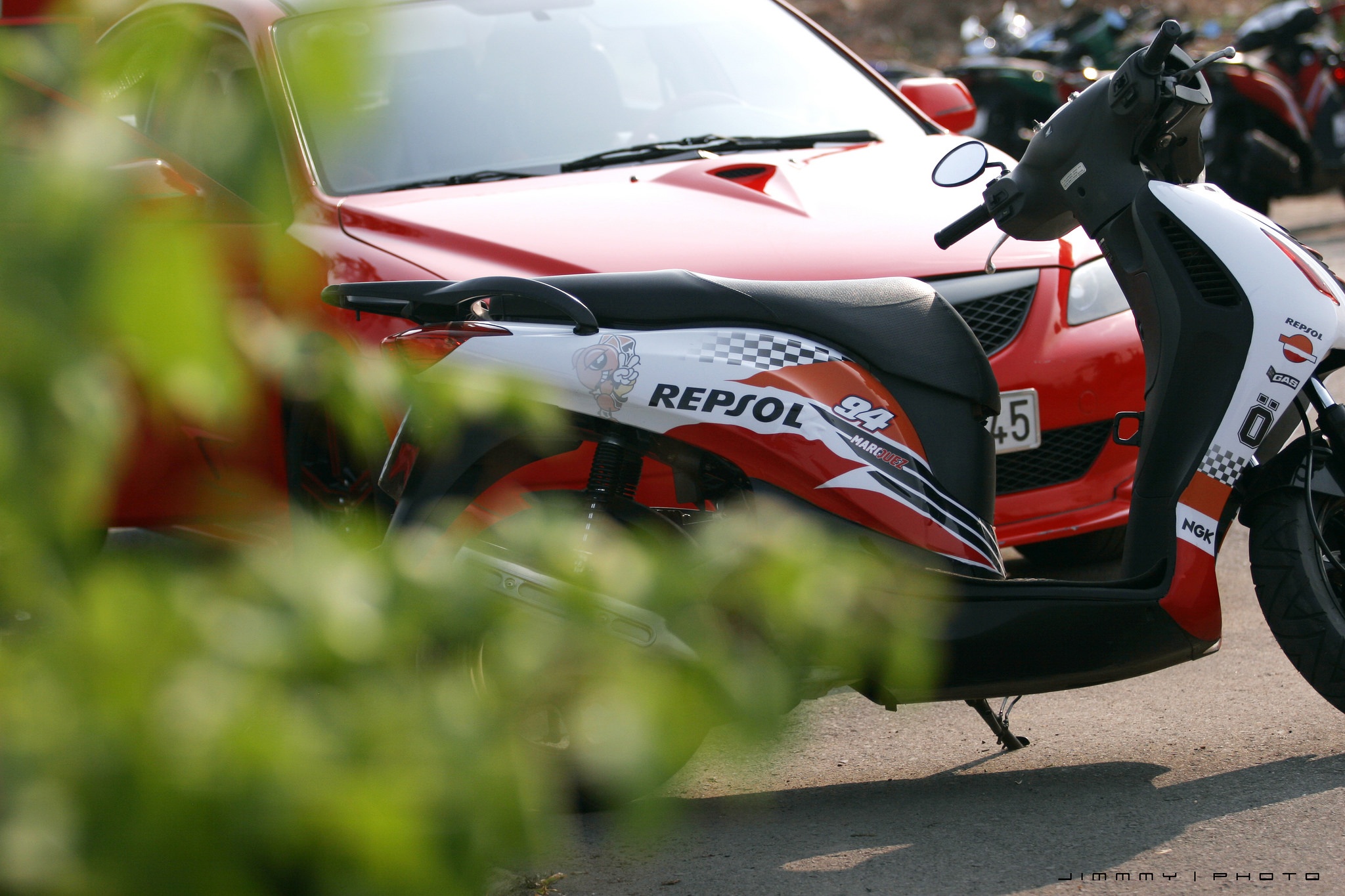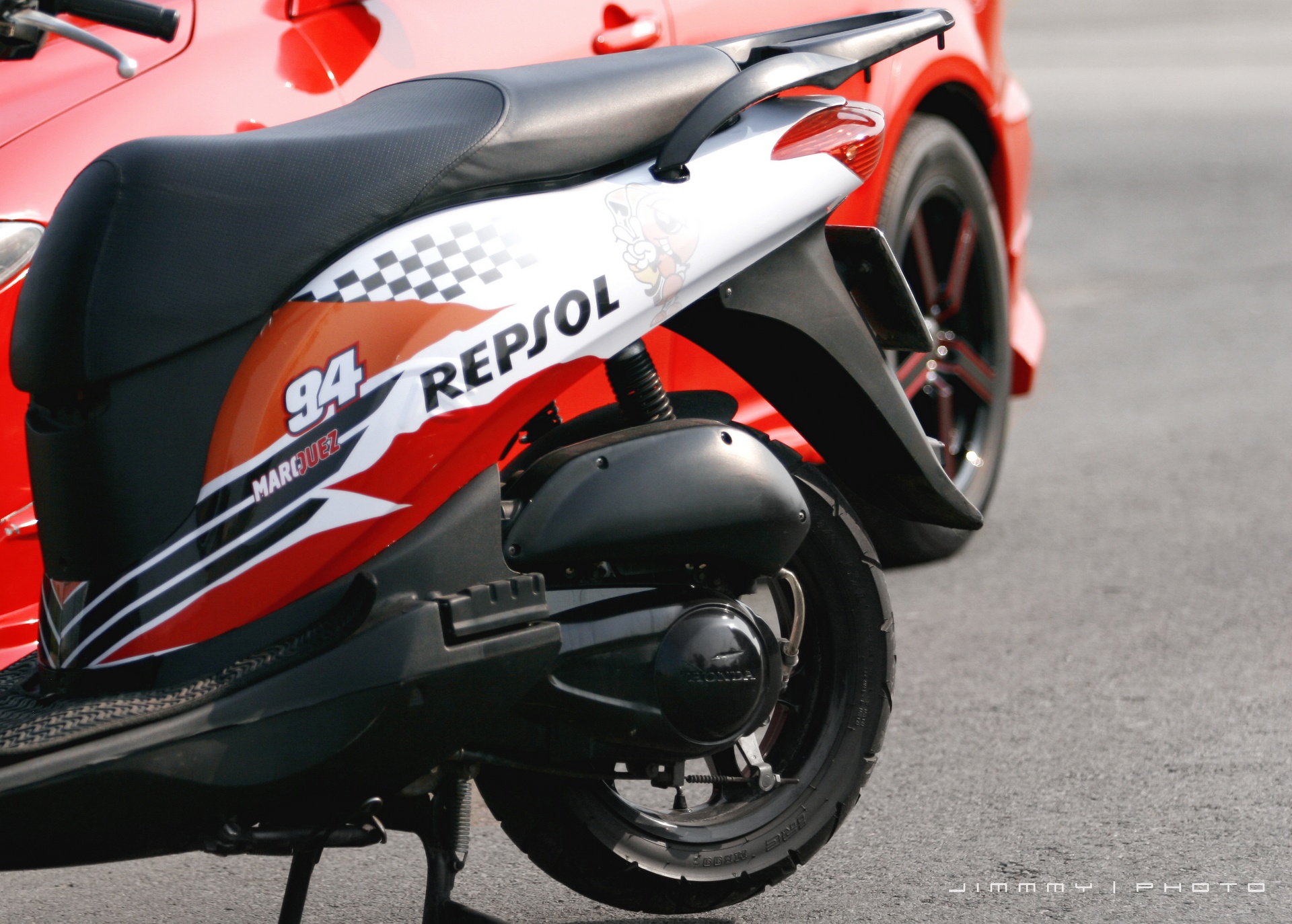 Chiếc xe tay ga cao cấp được một người chơi xe khoác bộ cánh Repsol đặc trưng trên những chiếc MotoGP của đội Honda.