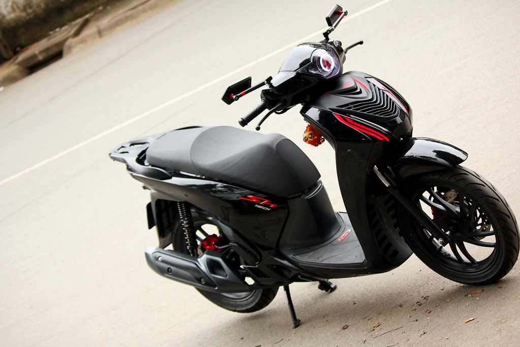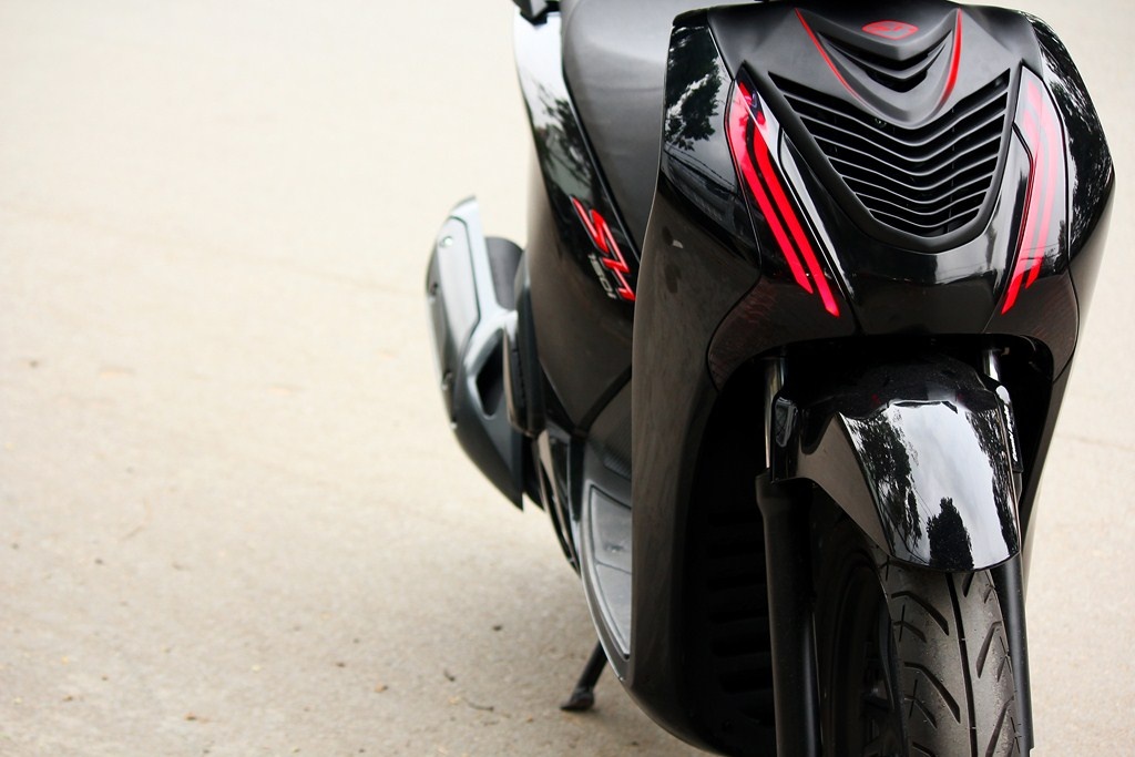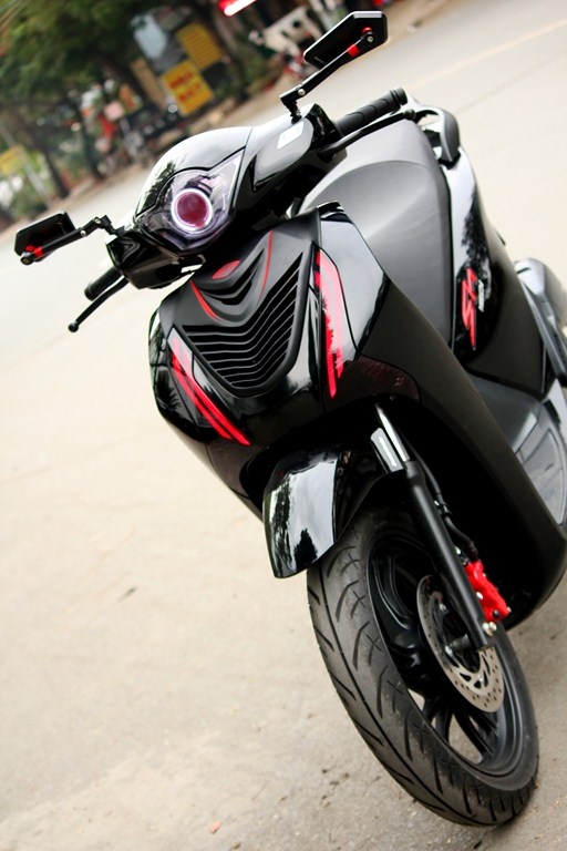 | Chiếc SH 2012 nguyên bản màu đen nhưng được phối thêm màu đỏ và tạo thêm điểm nhấn ở logo SH, heo dầu, viền kính chiếu hậu, logo Honda nơi lốc máy. |