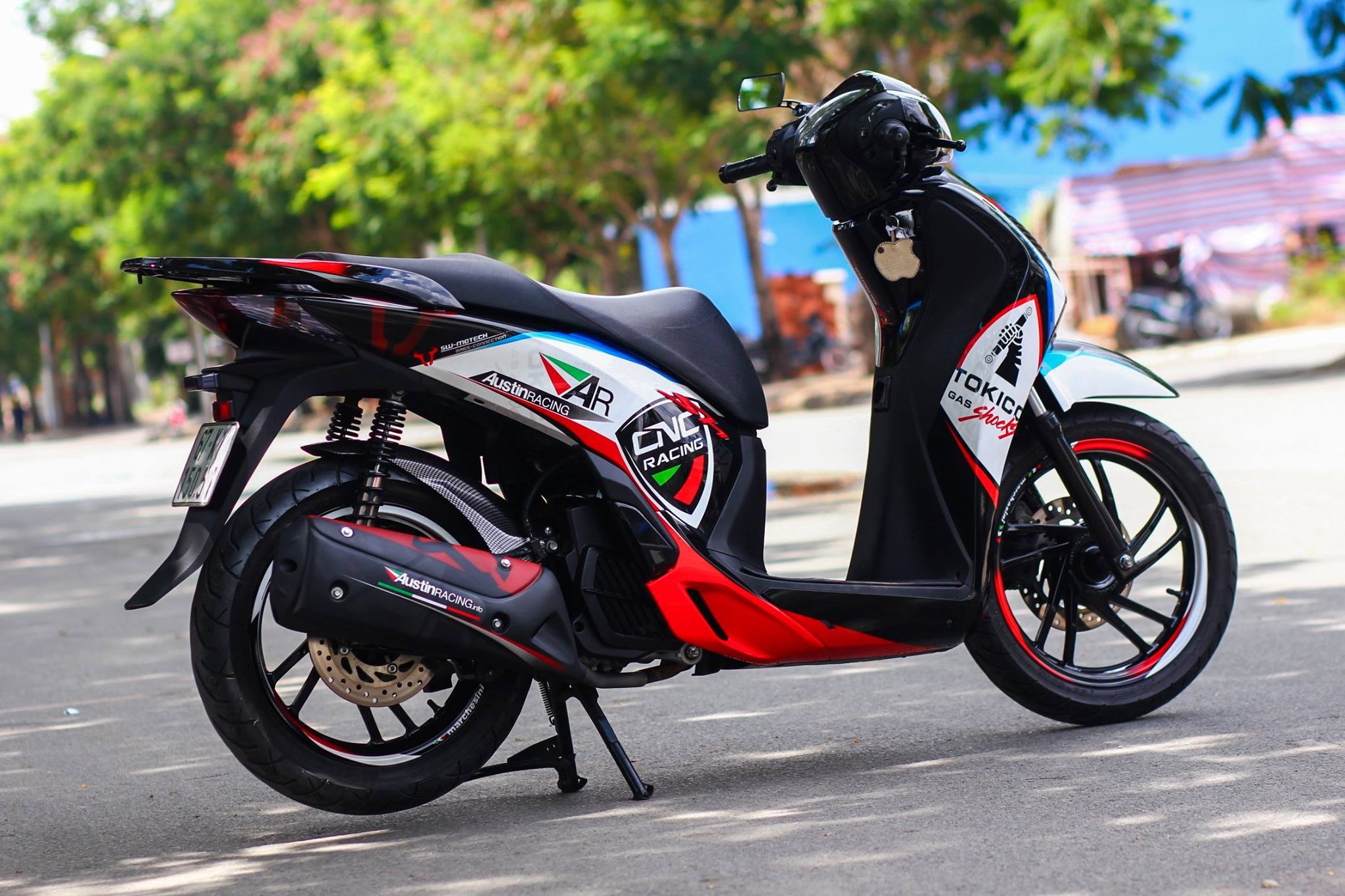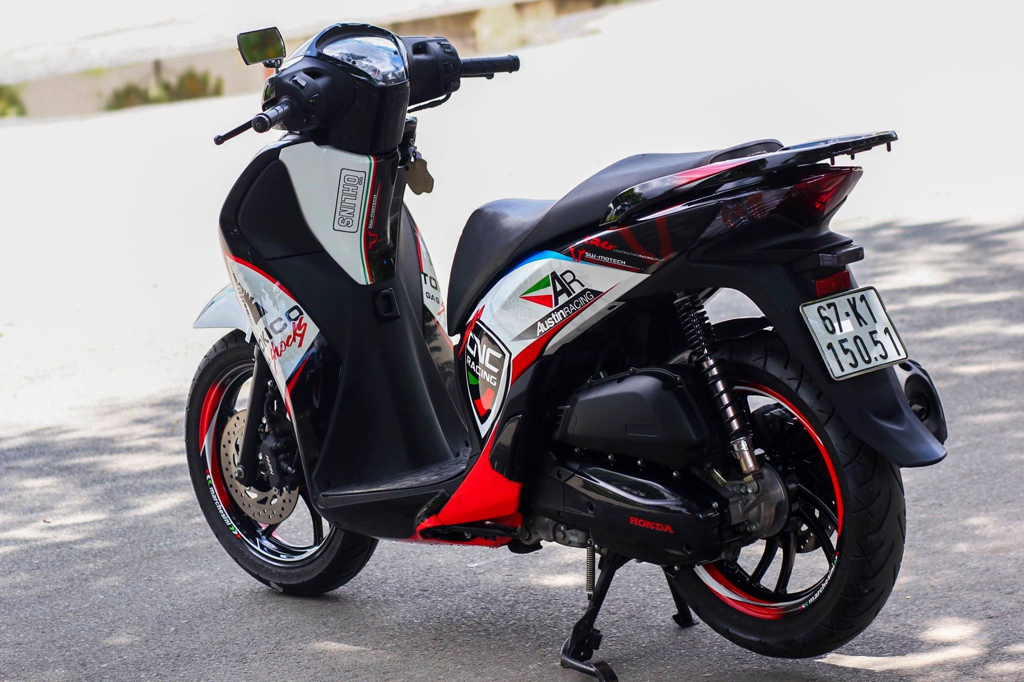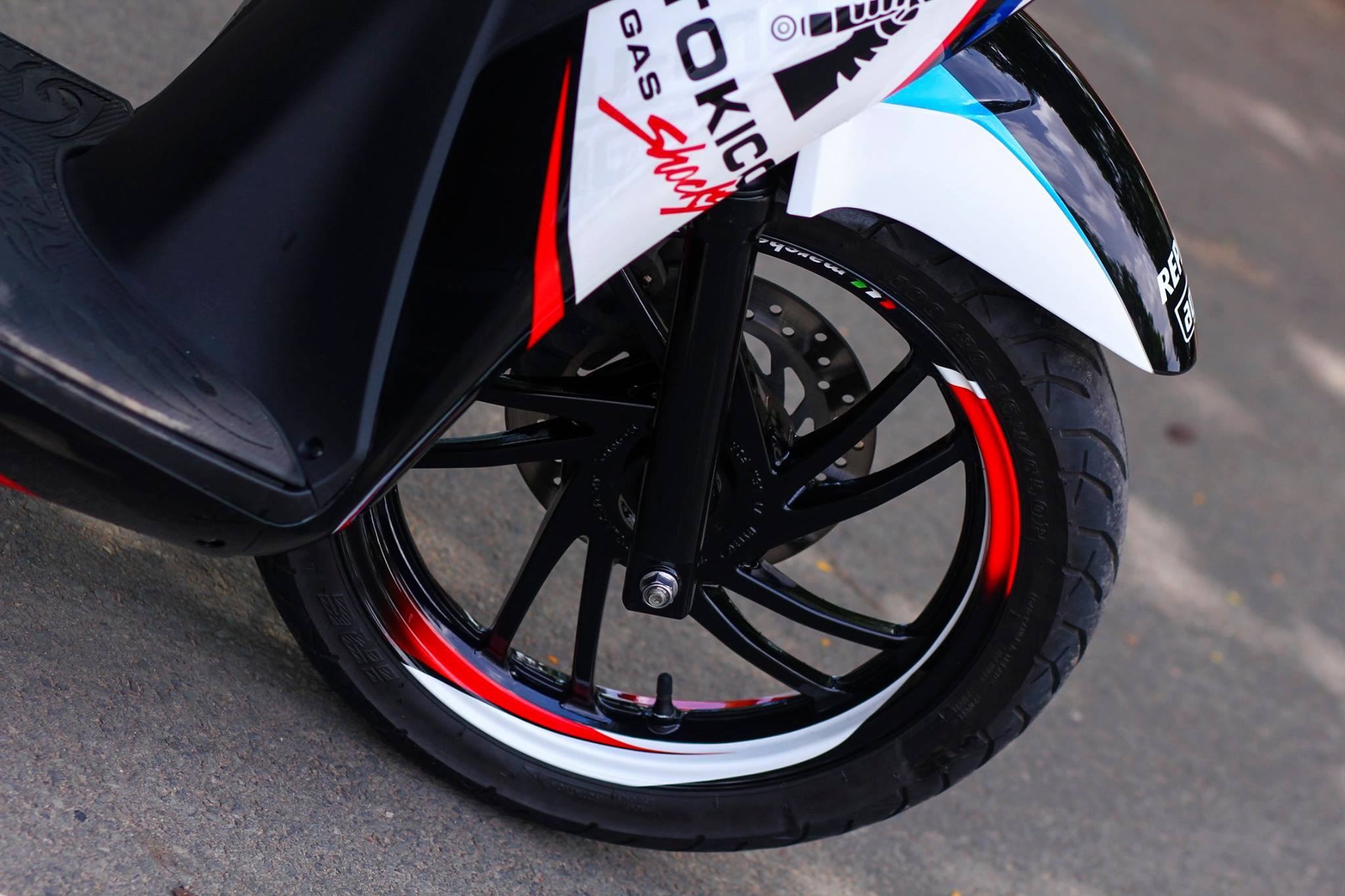 | Cặp mâm cũng sơn tem đấu để đồng bộ với dàn áo. Ốp pô chế kiểu SH 300i bằng cách đổ khuôn composite. |