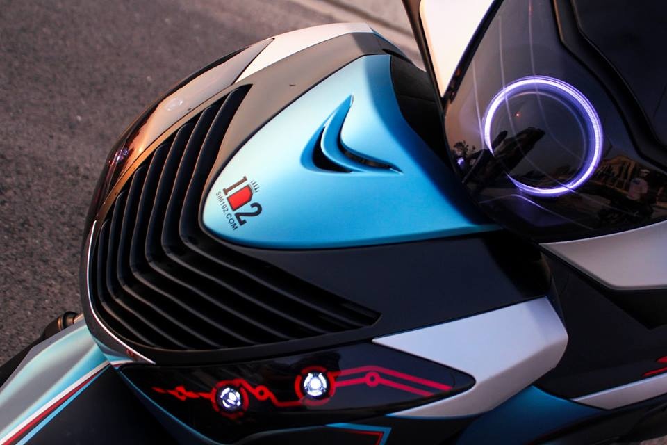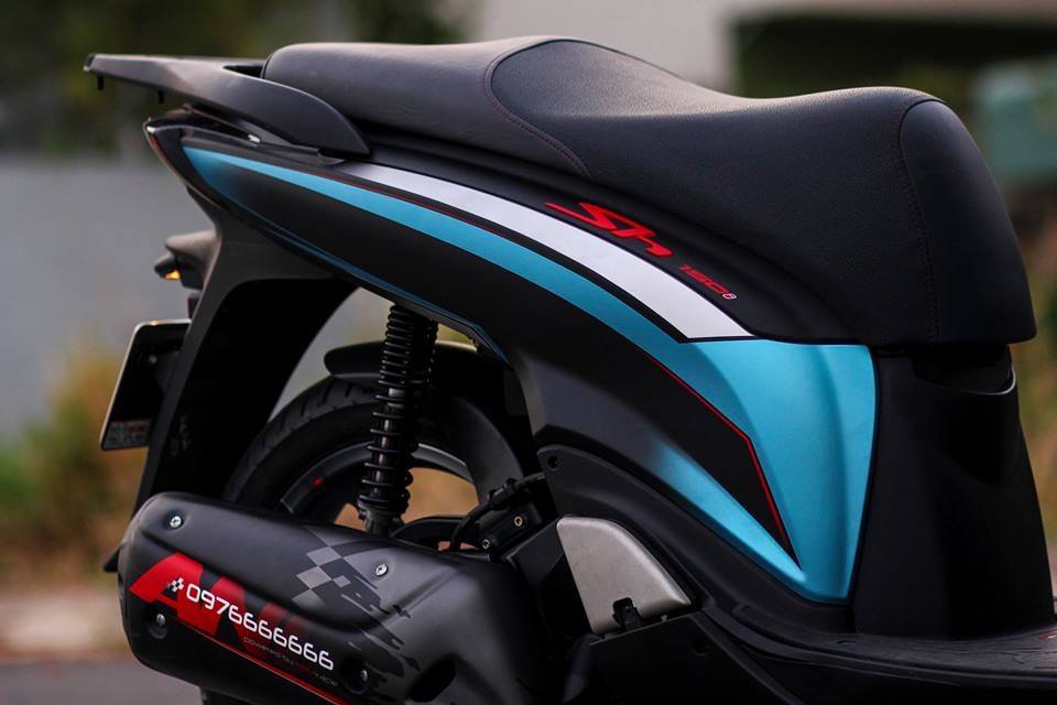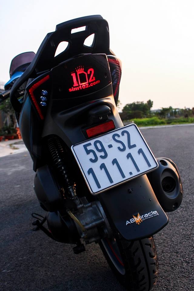 Mẫu xe tay ga độ phong cách phối màu đơn giản nhưng vẫn tạo được nét mạnh mẽ với màu xanh Marino nhám chủ đạo.