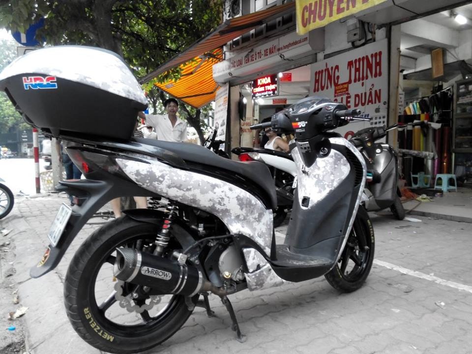 Chiếc Honda SH 2011 thay màu áo mới bằng loại giấy dán màu "Camo digital" thường thấy trên các bộ quân phục lực lượng quân đội phương Tây.
