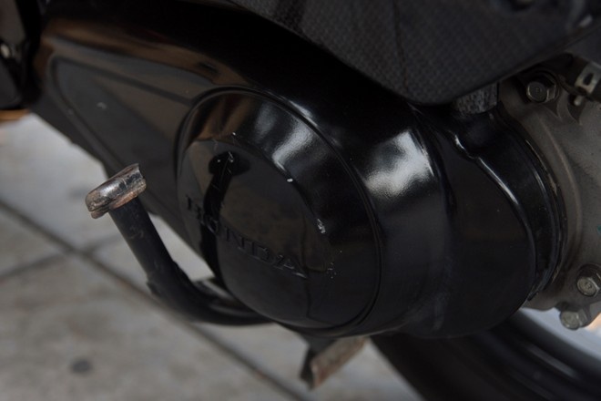 | Lốc máy và vành xe được sơn đen. |