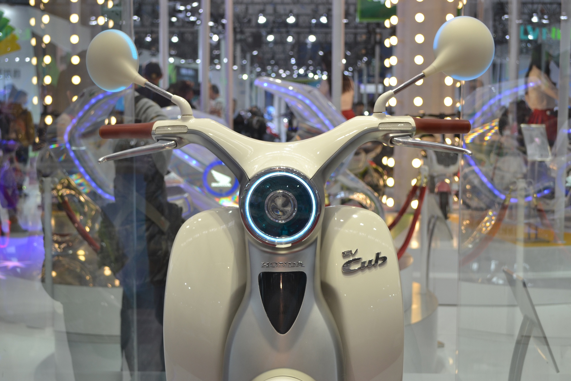 EV-Cub - phiên bản kế nhiệm của dòng xe huyền thoại Super Cub có kiểu dáng mềm mại và được trang bị hai motor điện cùng hệ thống giao tiếp HELLO.