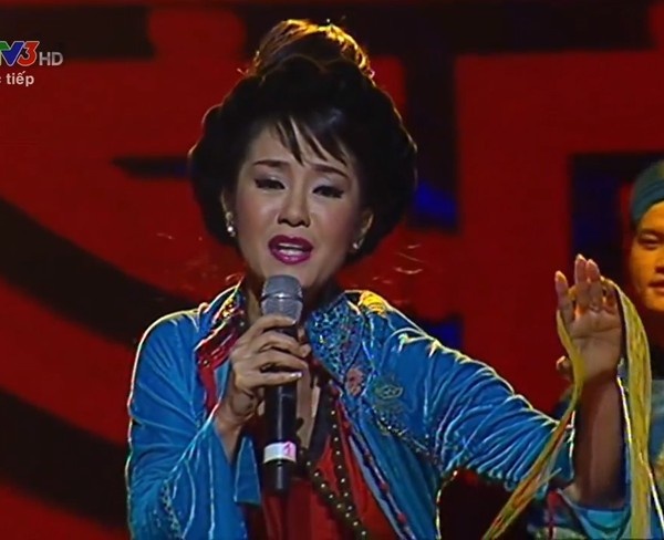 | Hồng Nhung biểu trên sân khấu Bài hát yêu thích gần đây với gương mặt sắc sảo bất thường. |