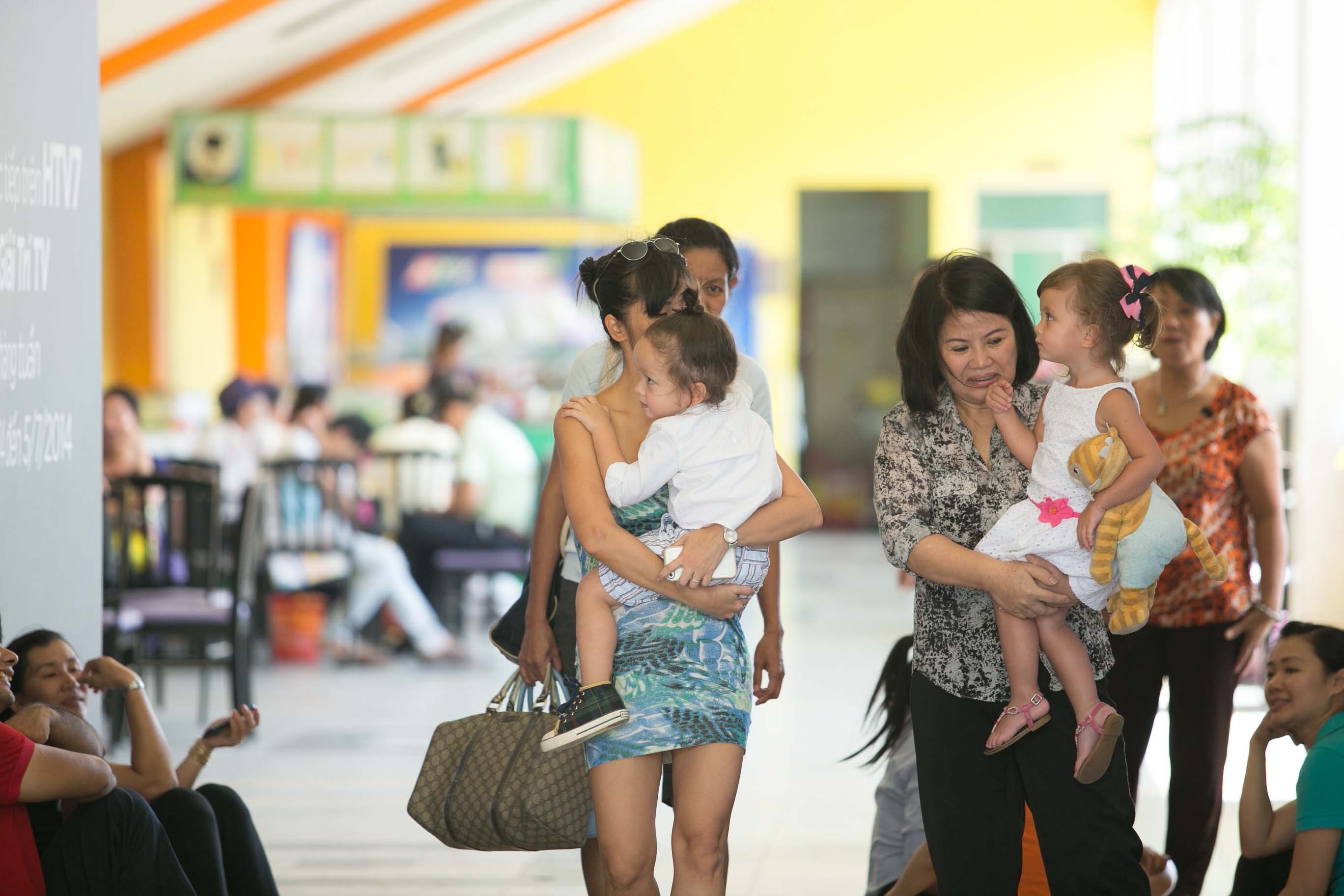 | Trong khi Aiden được mẹ Hồng Nhung bế, Lea lại trong vòng tay bà ngoại. Sau khi trò chuyện với mọi người, ba mẹ con giọng ca Họa mi hót trong mưa nhanh chóng ra về. |