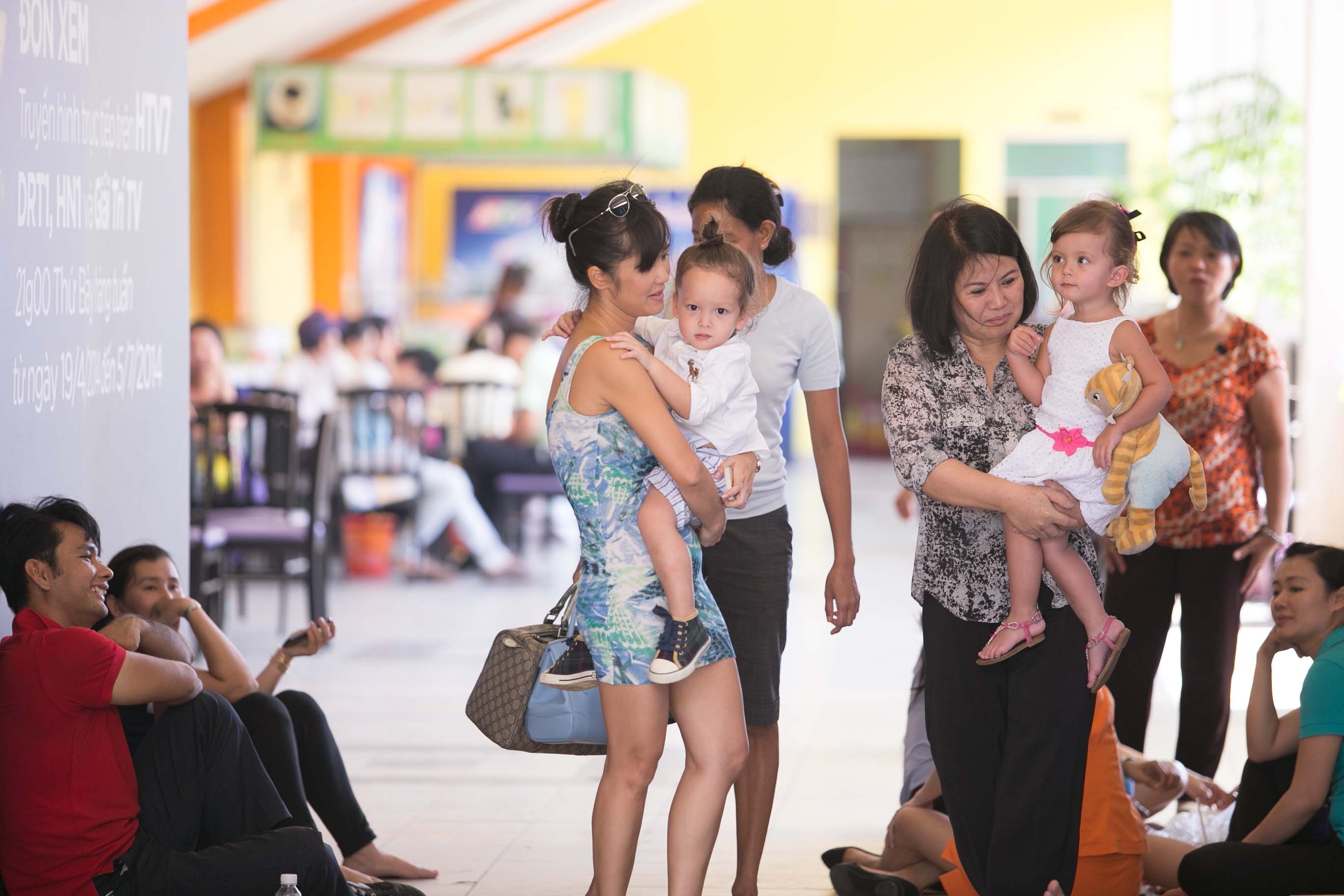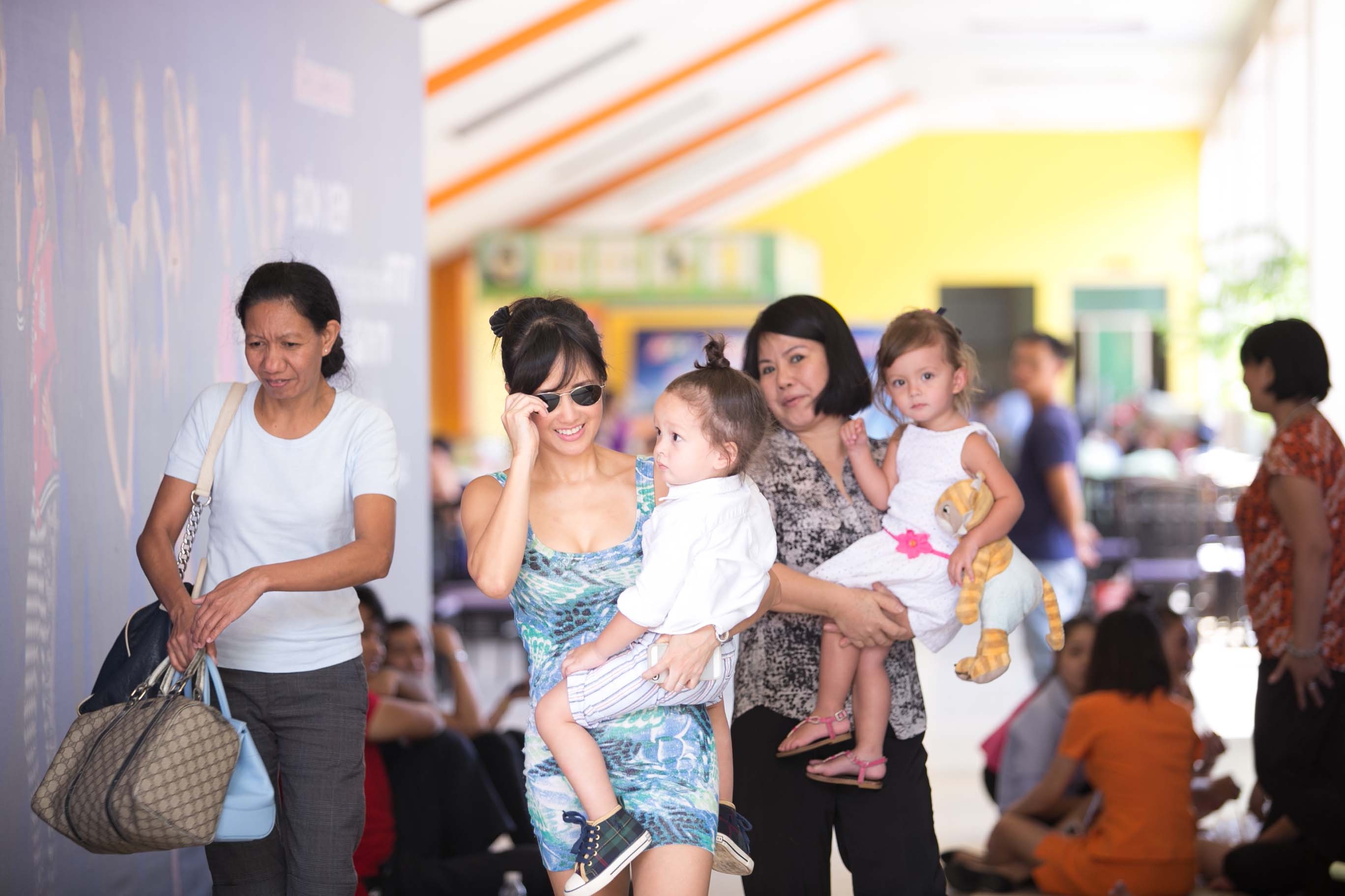 | Cậu ấm Tôm có vẻ khá quấn mẹ. Bé ôm chặt Hồng Nhung đầy ngượng nghịu khi thấy mọi người chú ý tới mình. |