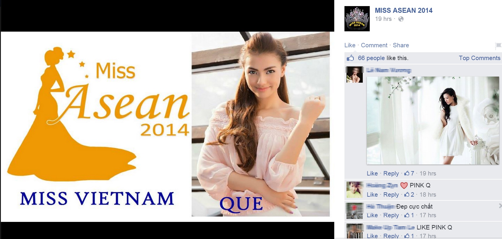 | Hình ảnh Hồng Quế xuất hiện trên trang fanpage cuộc thi Hoa hậu Đông Nam Á 2014. |