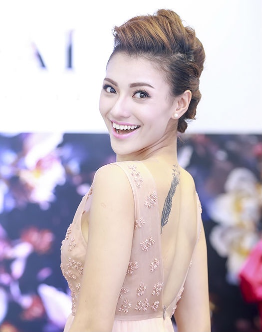| Phần cắt xẻ táo bạo phía sau thiết kế làm lộ tấm lưng trần gợi cảm và hình xăm cá tính của người mặc. |