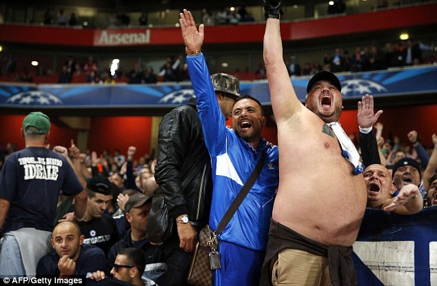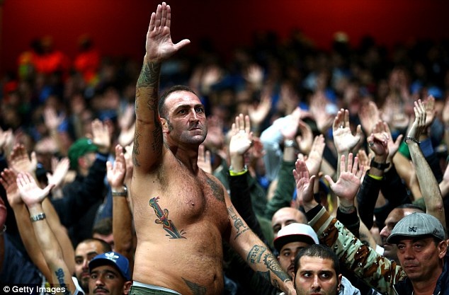 | Họ liên tục có kiểu chào theo kiểu phát xít và hò hét nhằm át vía đoàn quân của HLV Arsene Wenger. |