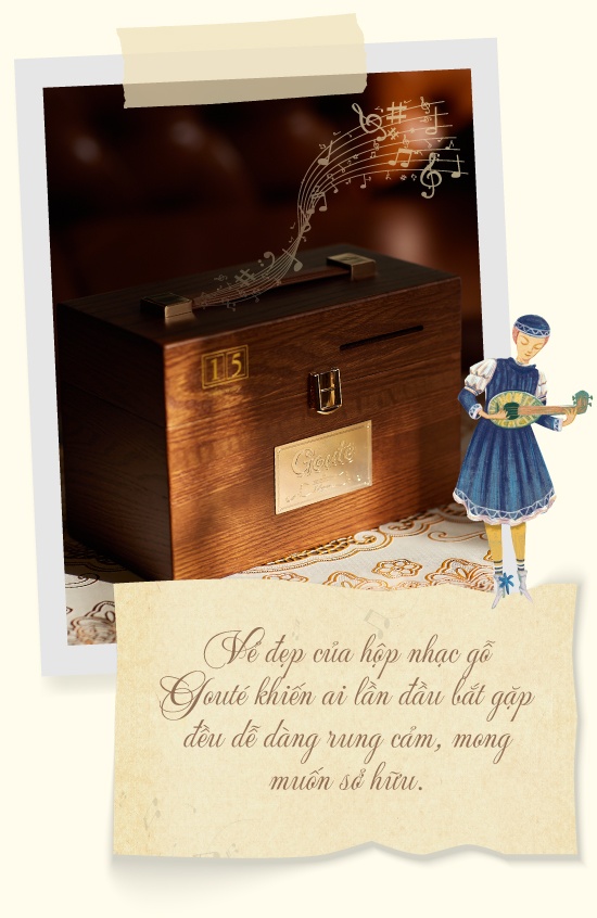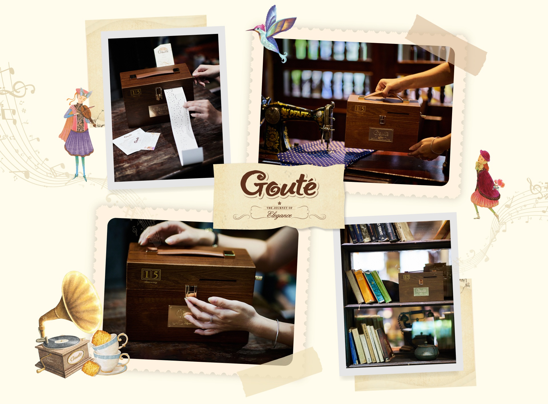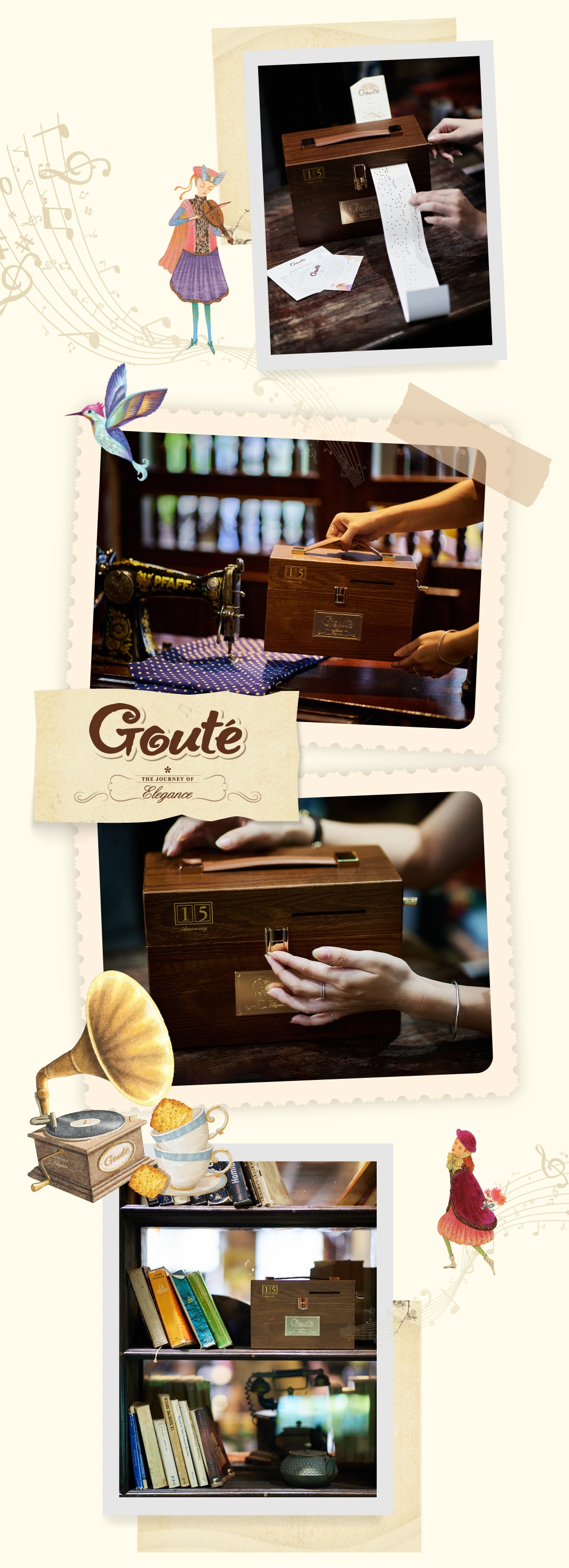 Nhân dịp 15 năm có mặt tại Việt Nam, Gouté ra mắt hộp quà phiên bản giới hạn được thiết kế độc quyền cho những ai yêu thích tinh thần, triết lý và chất lượng của thương hiệu. Thông điệp “Hộp nhạc gỗ thanh âm kỳ diệu - lan tỏa niềm vui sống và đam mê” là sự tổng hòa từ hương vị khó quên của bánh quy Gouté, hình ảnh cô gái Pháp thanh lịch và thanh âm êm dịu từ những giai điệu diệu kỳ.