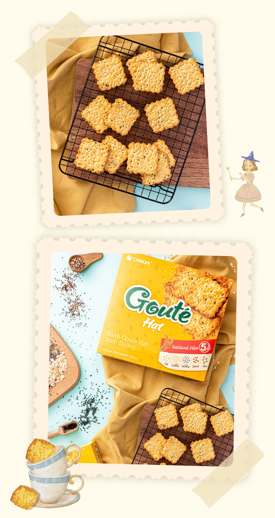 Trải qua gần 2 thập kỷ, những chiếc bánh quy Gouté vẫn làm say lòng thực khách bằng hương vị tinh tế như những ngày đầu, duy chỉ có thiết kế hộp cùng giai điệu âm nhạc được thay đổi đều đặn qua mỗi năm. Nhờ vậy, cứ bước vào những tháng cuối năm, người ta lại háo hức chờ đợi thiết kế đặc biệt mà Orion dành cho Gouté. Không gì ý nghĩa hơn được trao tay người thân thức quà Tết 3 trong 1: Vừa là thức bánh ngon, vừa là vật phẩm trang trí cho không gian thêm sinh động, vừa là chiếc máy phát ra những thanh âm bình yên, hạnh phúc cho ngày đầu năm.