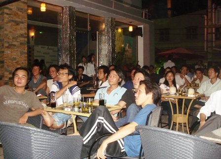 Trước World Cup khoảng một tuần, các quán bia, cà phê đã thi nhau sắm những màn hình tivi màn hình cỡ lớn để phục vụ khách hàng xem bóng đá. Anh Thanh, chủ một cửa hàng bia trên đường Hoàng Cầu cho biết: " Tối khai mạc World Cup khách đến kín chỗ. Nhân viên phục vụ không xuể". |