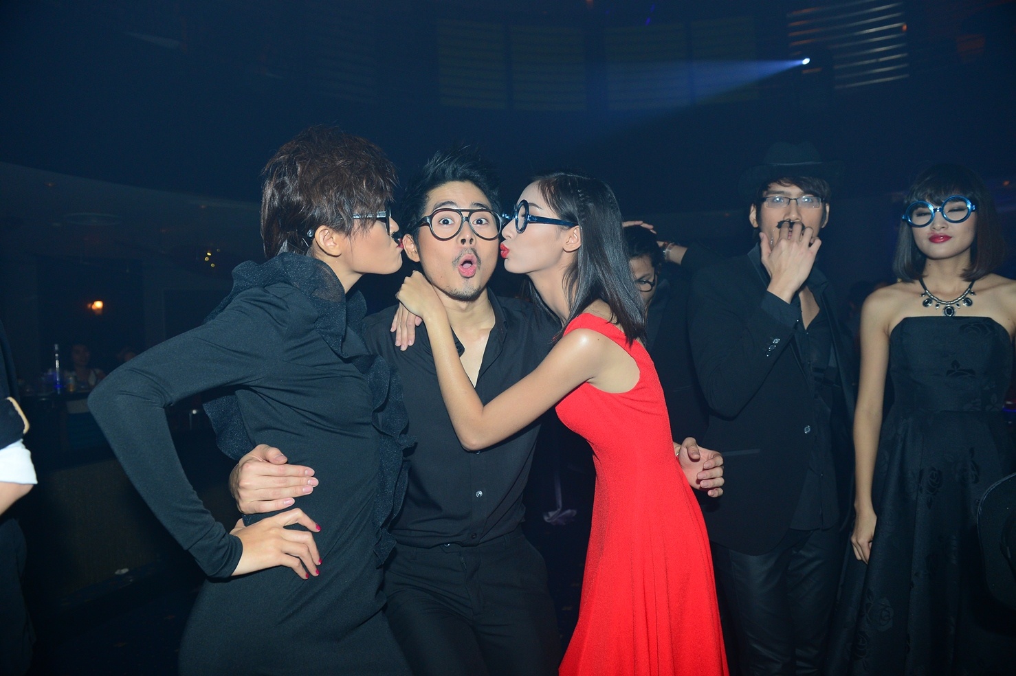 Anh chàng thậm chí còn được hai người đẹp hôn ngay trước sự chứng kiến của quan khách cùng đi dự tiệc.