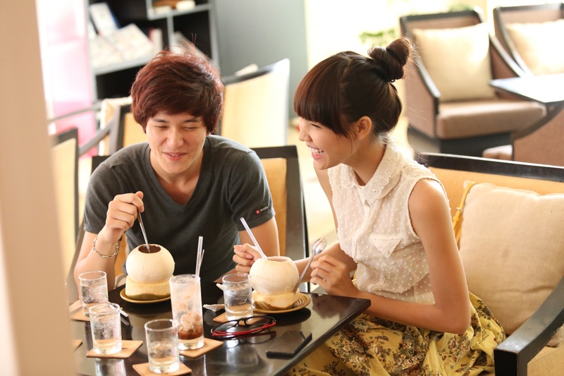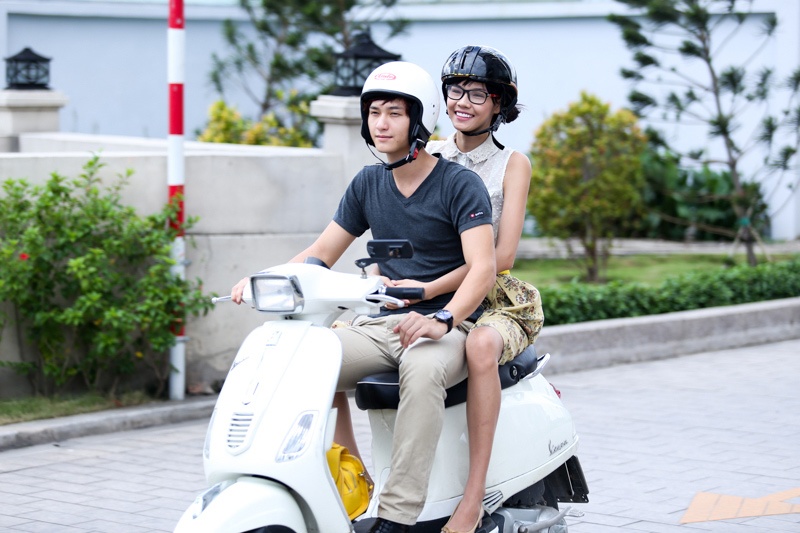 | Sau buổi cà phê, cặp đôi vui vẻ chở nhau ra về. |