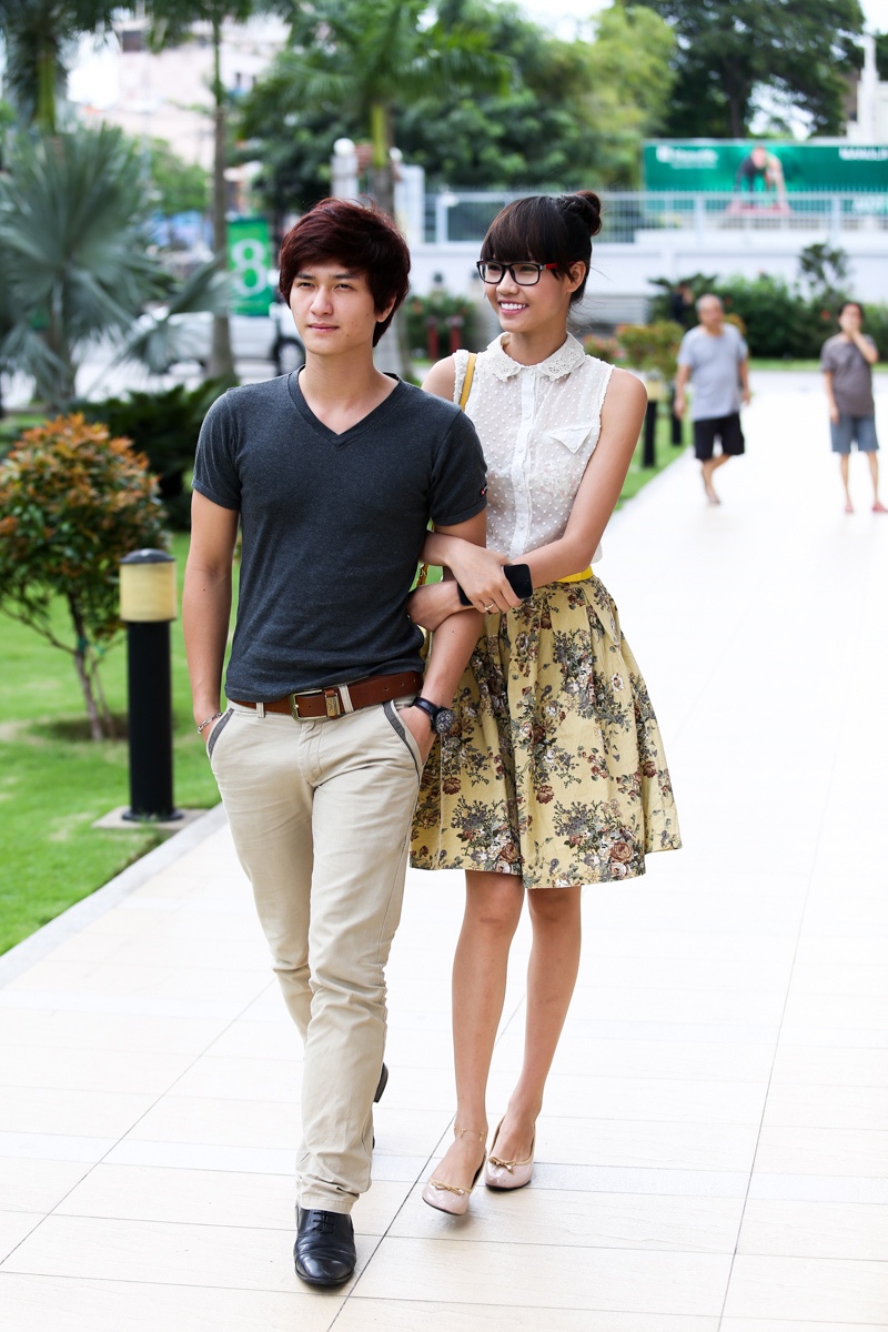 | Cặp "trai tài gái sắc" thu hút sự chú ý trên phố. |