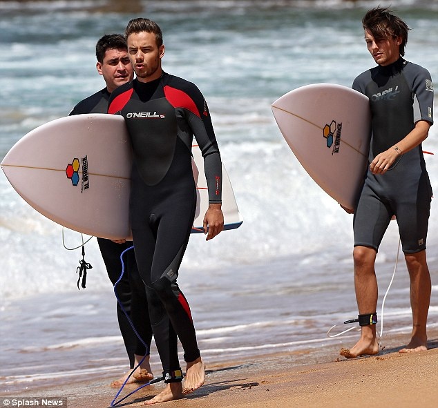 | Hầu như ở nơi nào boyband này tới đều có sự xuất hiện của fan cuồng. Trước đó, Liam và các thành viên khác của One Direction đã có buổi lướt sóng vui vẻ. |