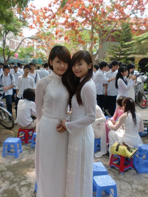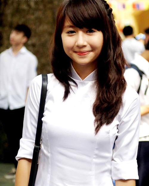 | Bảo Trân trông trẻ trung đúng tuổi khi mặc áo dài. |
