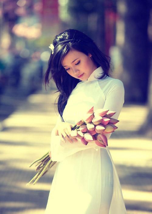 | Midu với bộ ảnh áo dài và hoa sen. |