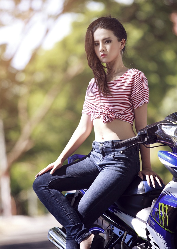 | Cô nhận được nhiều lời mời chụp ảnh cùng xe phân khối lớn. |