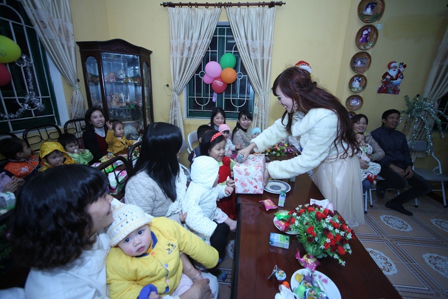 | Đến 19h30, cô cùng đoàn xe đã đến Trung tâm trẻ mồ côi, suy dinh dưỡng Hà Nội để trao quà cho các em. |